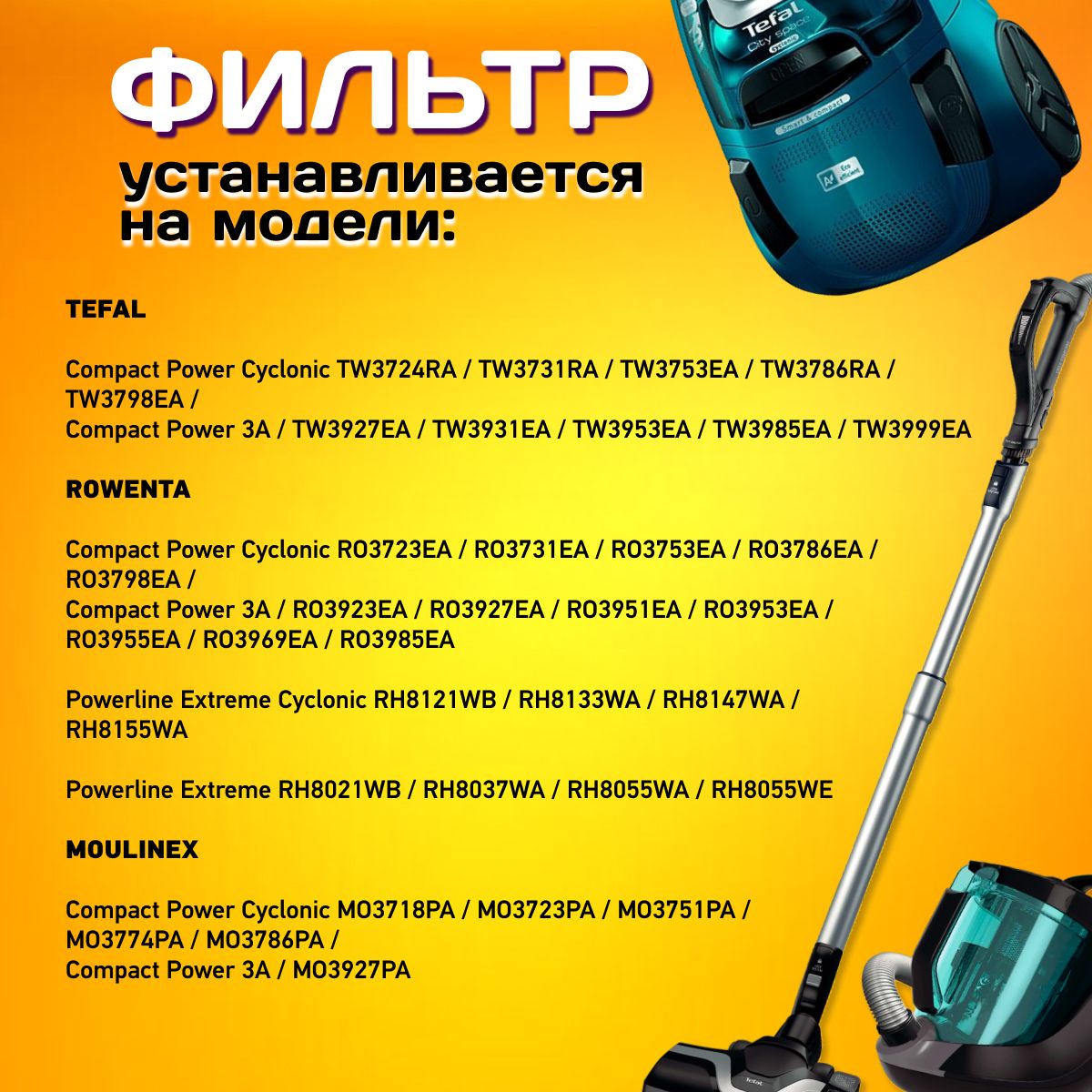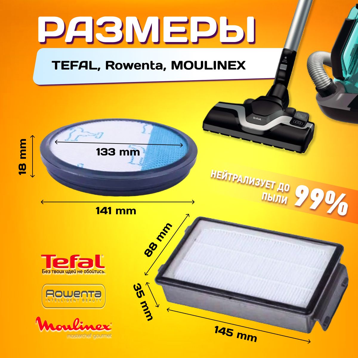 Описание: Текст при отключенной в браузере загрузке изображенийФильтра для TEFAL, Rowenta, MOULINEXКомплект фильтров для пылесосов Tefal, Rowenta, Moulinex Набор фильтров HEPA с высокой производительностью фильтрации до 99.9% эффективно препятствует запылению и защищает от вторичного загрязнения.