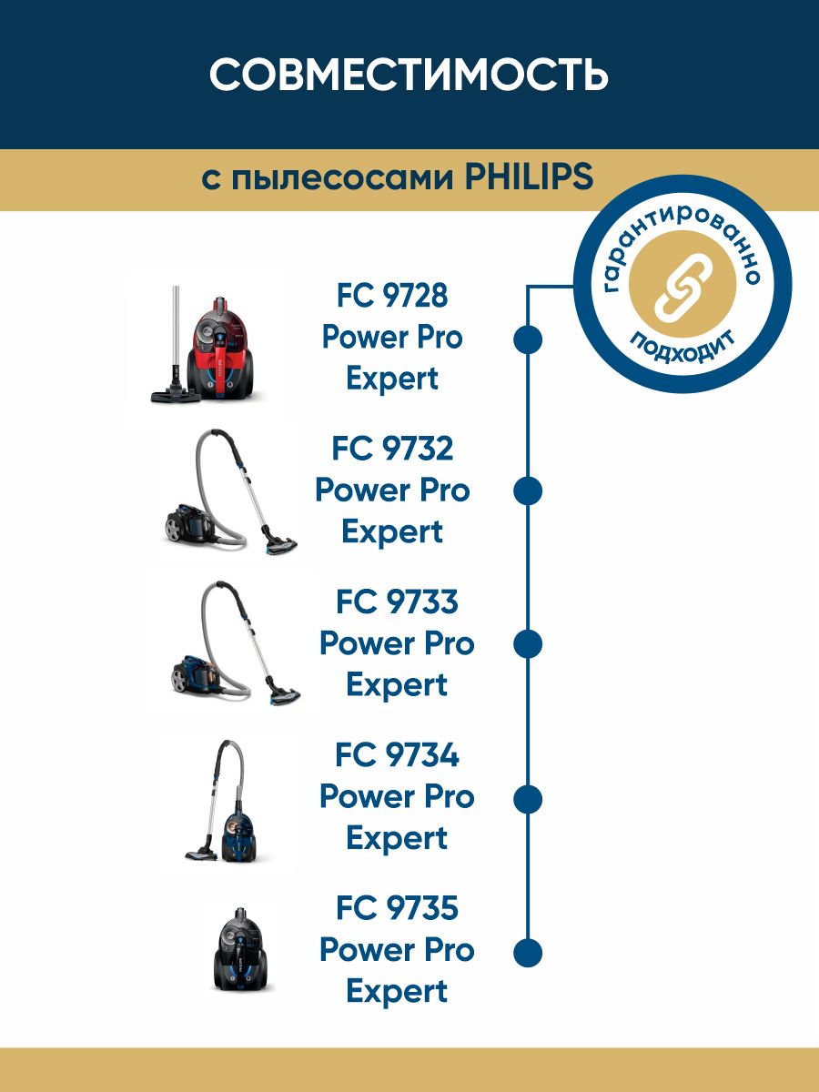 • Совместимость фильтров (для упрощения поиска модели, откройте товар в браузере и с помощью команды CTRL+F вбейте модель пылесоса):PHILIPS FC 9728 Power Pro Expert, FC 9732 Power Pro Expert, FC 9733 Power Pro Expert, FC 9734 Power Pro Expert, FC 9735 Power Pro Expert