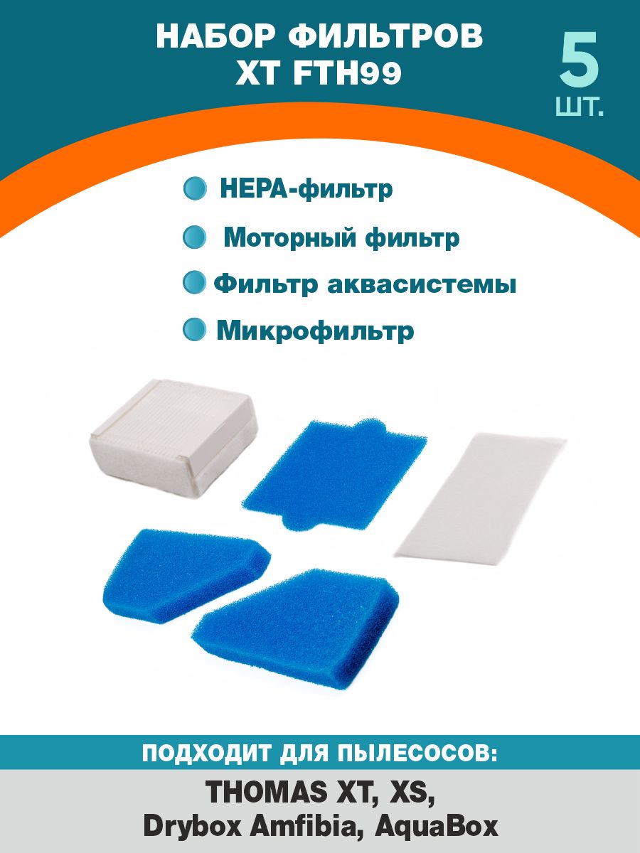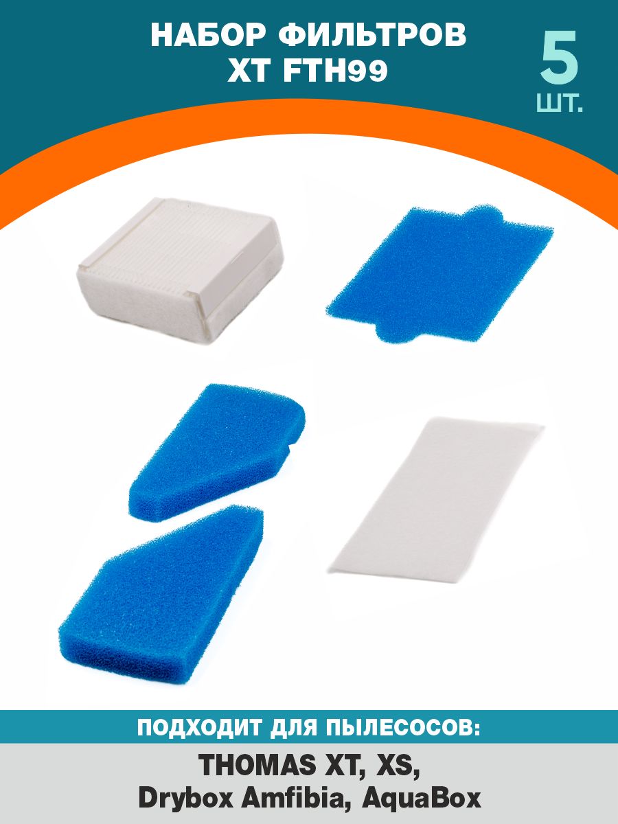 HEPA фильтр ReFill FTH 99 для пылесосов THOMAS XT, XS, Drybox Amfibia, AquaBox (5 предметов)