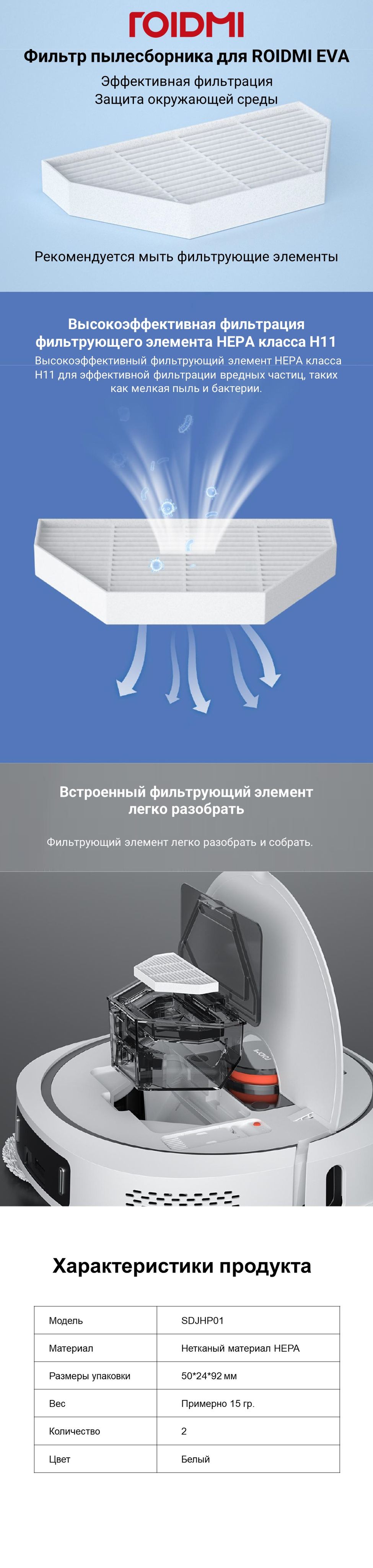 HEPA-фильтр ROIDMI для робота-пылесоса ROIDMI EVA, 2 шт.