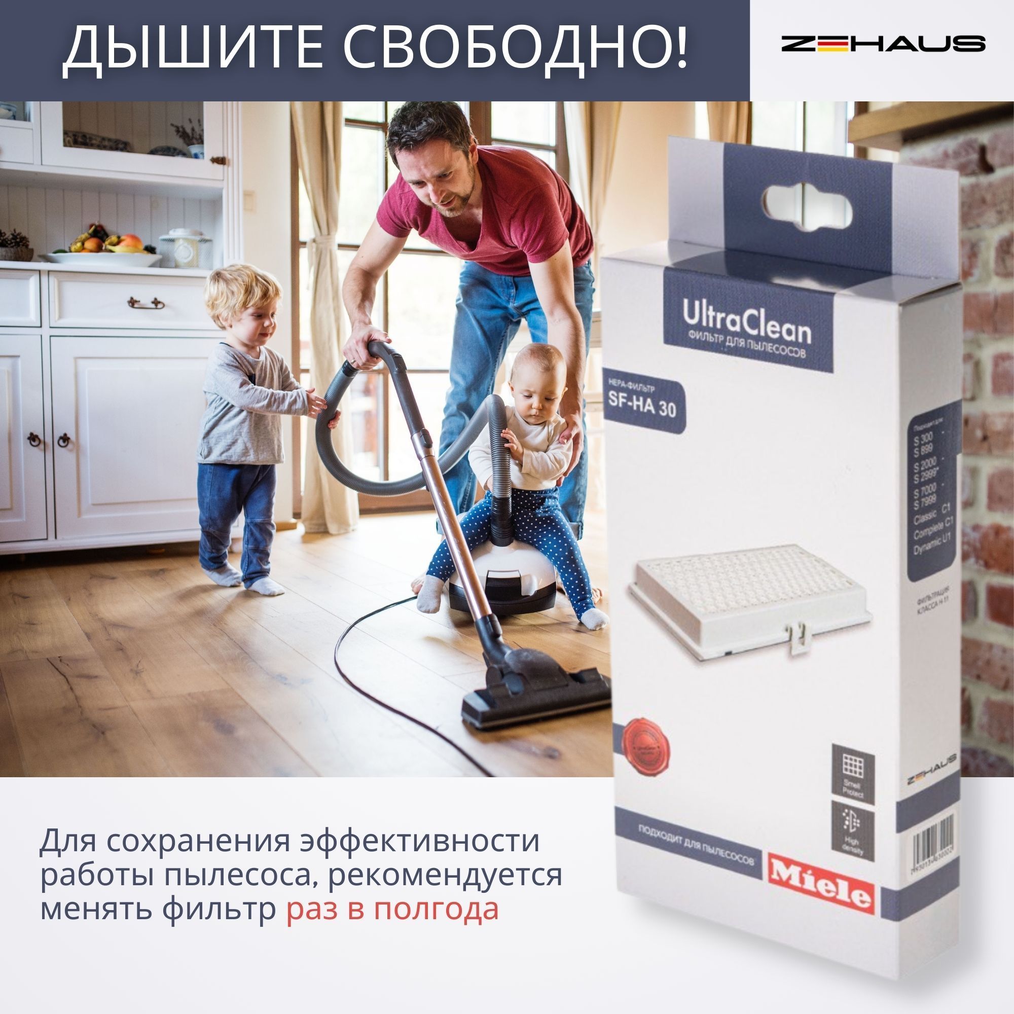 HEPA фильтр SF-HA 30 UltraClean от ZEHAUS. СОВМЕСТИМЫЕ с пылесосами Miele
