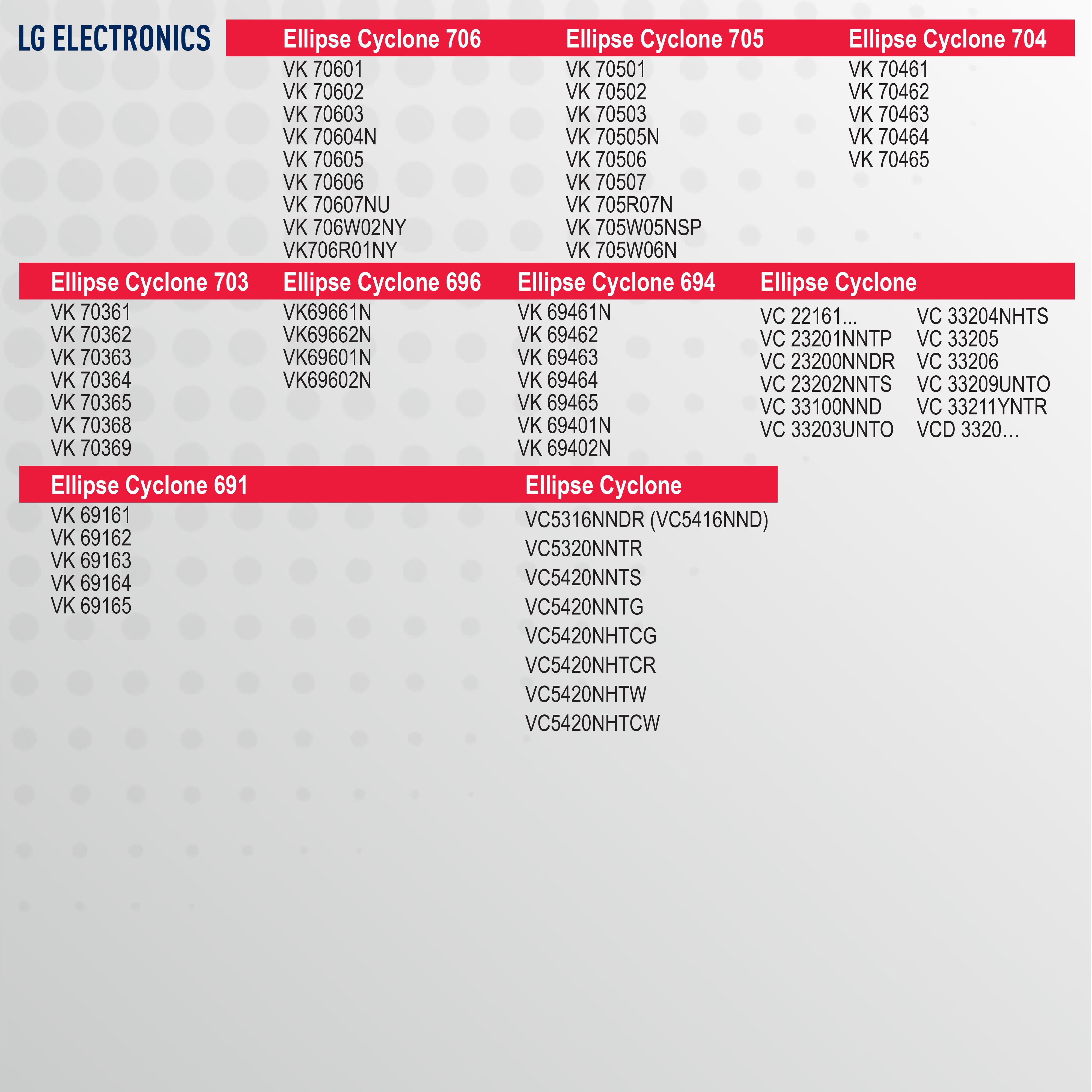 Описание: HEPA - фильтр для пылесосов LG: Ellipse Cyclone 703: VK70361, VK70362, VK70363, VK70364, VK70365, VK70368, VK70369; Ellipse Cyclone 691: VK69161, VK69162, VK69163, VK69164, VK69165; Ellipse Cyclone 694: VK69461N, VK69462, VK69463, VK69464, VK69465, VK69401N, VK69402N; Ellipse Cyclone 696: VK69661N, VK69662N, VK69601N, VK69602N; Ellipse Cyclone 705: VK70501, VK70502, VK70503, VK70505N, VK70506, VK70507, VK705R07N, VK705W05NSP, VK705W06N; Ellipse Cyclone 706: VK70601, VK70602, VK70603, VK70604N, VK70605, VK70606, VK70607NU, VK706W02NY, VK706R01NY; Ellipse Cyclone: VC 22161, VC23201NNTP, VC23200NNDR, VC23202NNTS, VC33100NND, VC33203UNTO, VC33204NHTS, VC33205, VC33206, VC33209UNTO, VC33211YNTR, VCD3320, VC5316NNDR (VC5416NND), VC5320NNTR, VC5420NNTS, NNTG, NHTCG, NHTCR, NHTW, NHTCW (оригинальный тип ADQ73393405) Фильтр для пылесоса обладает высшей степенью фильтрации, обеспечивает удаление пыли благодаря специальным свойствам фильтрующего материала. Этот незаменимый аксессуар для дома помогает избавиться от клещей, бактерий, паразитов, микроорганизмов и пыльцы, препятствуя возникновению и развитию заболеваний (кожа, аллергия, простудные заболевания). Уборка дома принесёт больше удовольствия и эффекта, если в Вашем пылесосе установлен новый фильтр. Topperr - недорогие товары для квартиры, дома, дачи, офиса европейского качества!