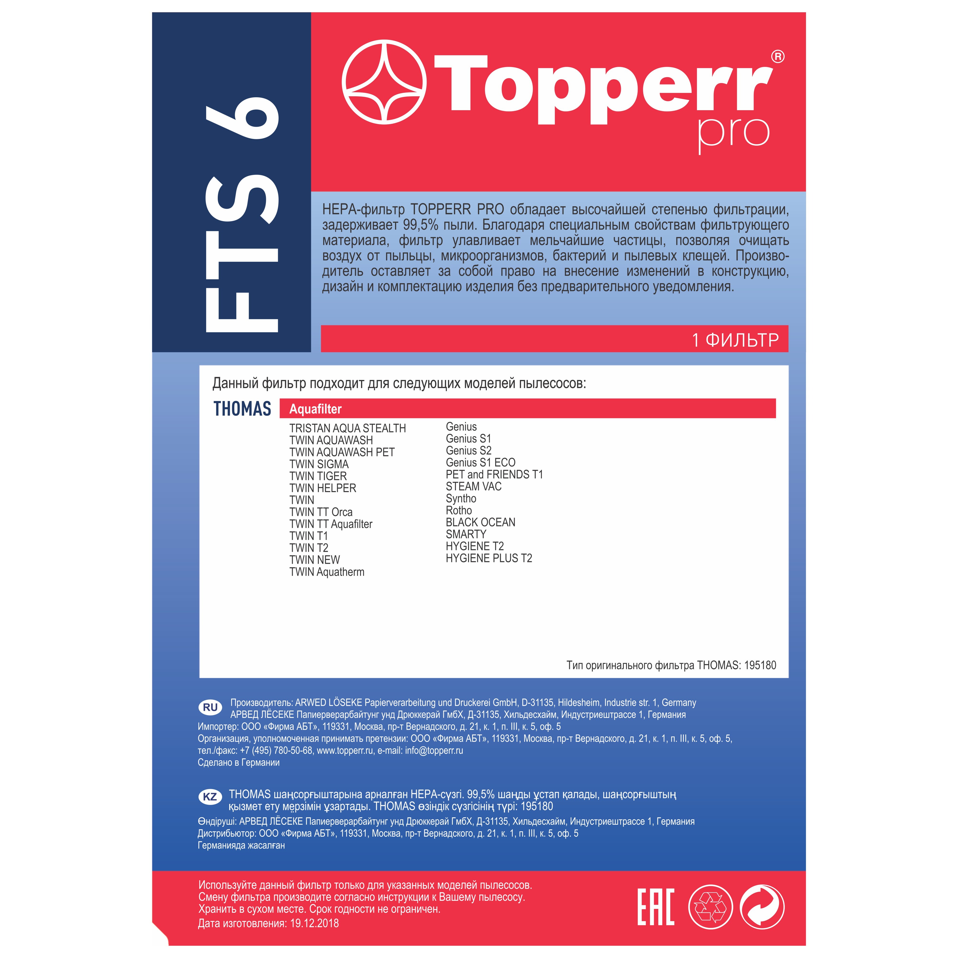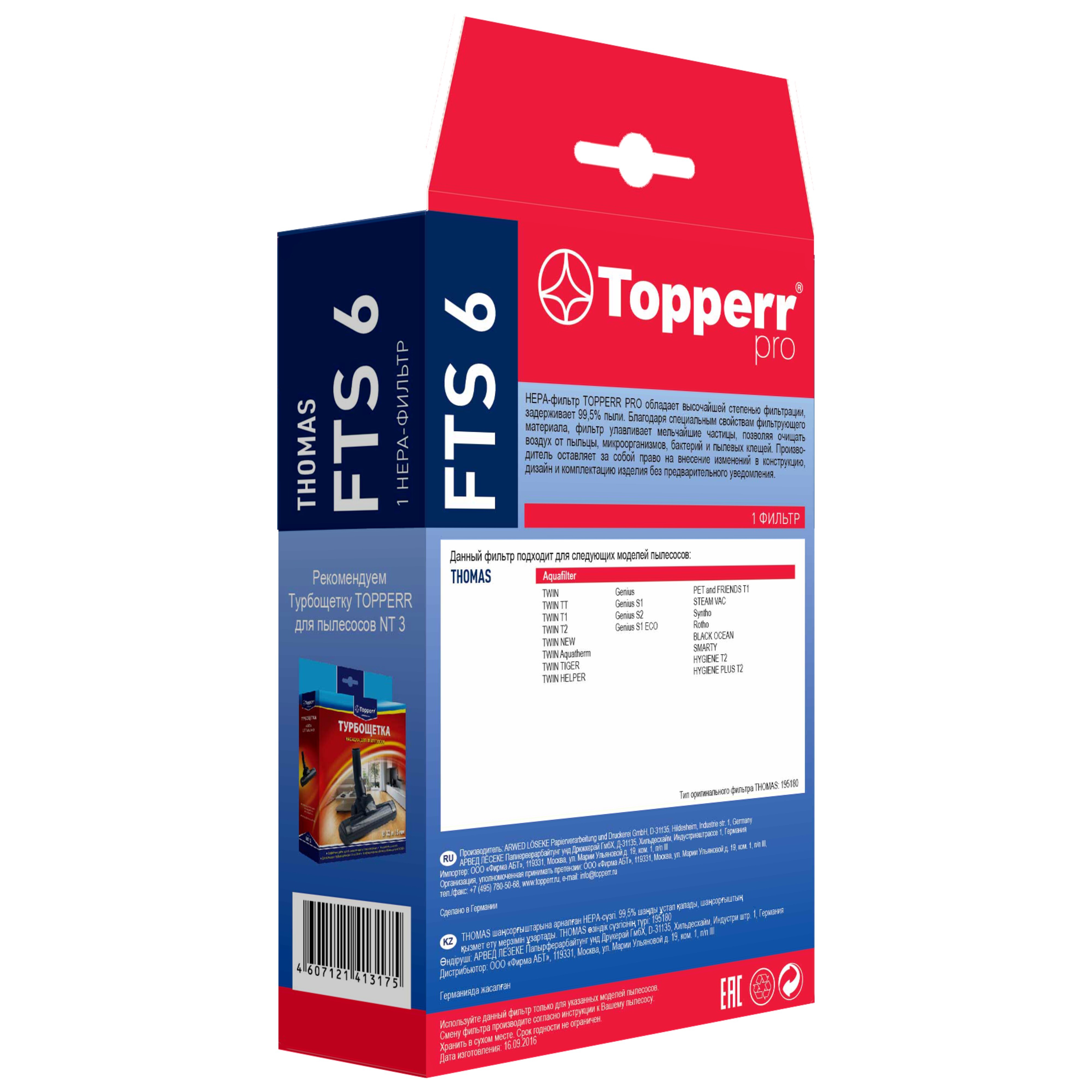 HEPA фильтр Topperr FTS 6 для пылесоса Thomas / Фильтр для пылесоса арт. 1103
