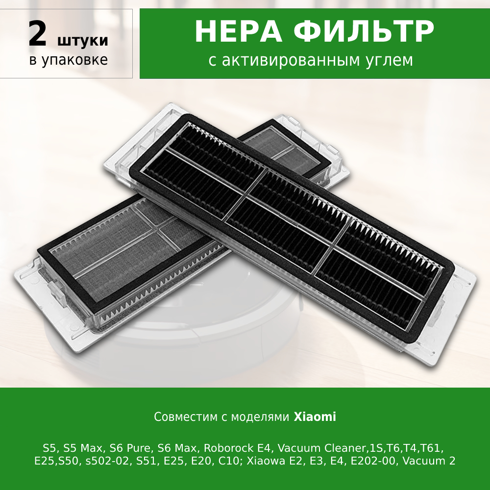 HEPA фильтры 2 шт. с активированным углем для робота-пылесоса Xiaomi S5, S5 Max, S6 Pure, S6 Max, Roborock E4, Vacuum Cleaner,1S,T6,T4,T61, E25,S50, s502-02, S51, E25, E20, C10; Xiaowa E2, E3, E4, E202-00, Vacuum 2