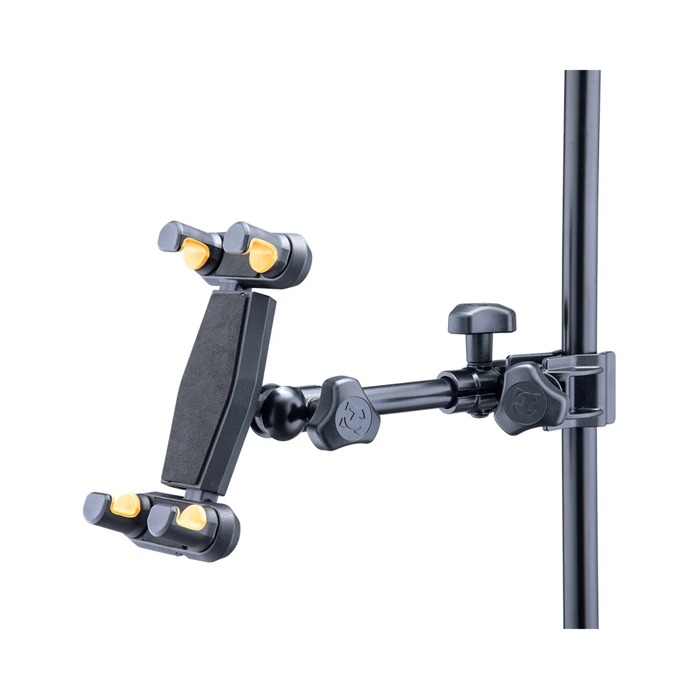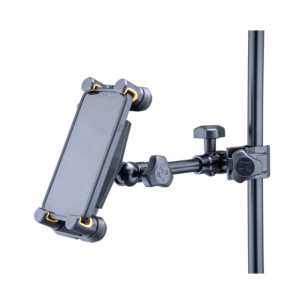 Описание: Hercules DG307B - адаптивный держатель для планшета или смартфона 2 в 1 для дома или студии. Особенности: Механизм блокировки TightVice обеспечивает надежную фиксацию устройства. Подходит для телефонов и планшетов размером от 6,1 до 13 дюймов. Держатель удобно крепится к столу, круглым и квадратным трубам, например, подставкам для клавишных, микрофонным стойкам или пюпитрам.
