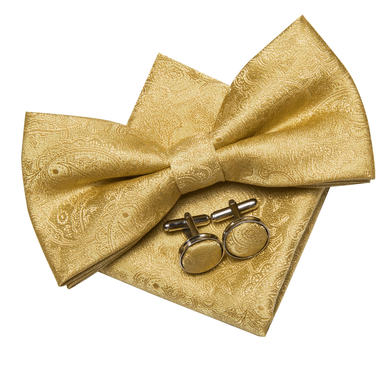 Hi-Tie, роскошные золотые шелковые галстуки-бабочки для мужчин, модные мужские желтые галстуки-бабочки, носовой платок, запонки, брошь, набор, Бабочка, Свадебный комплект