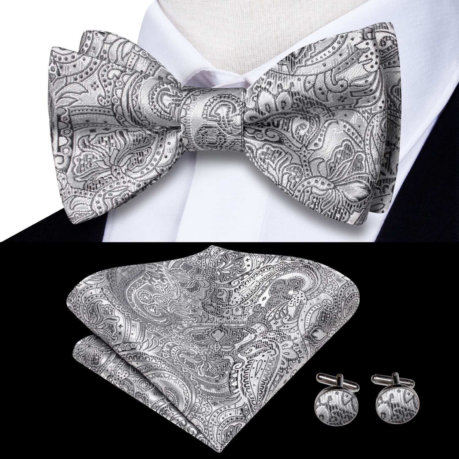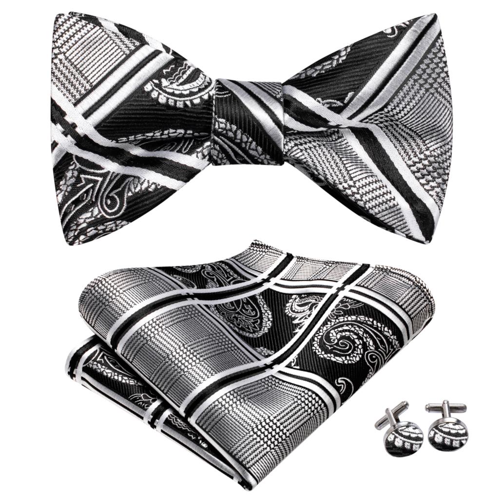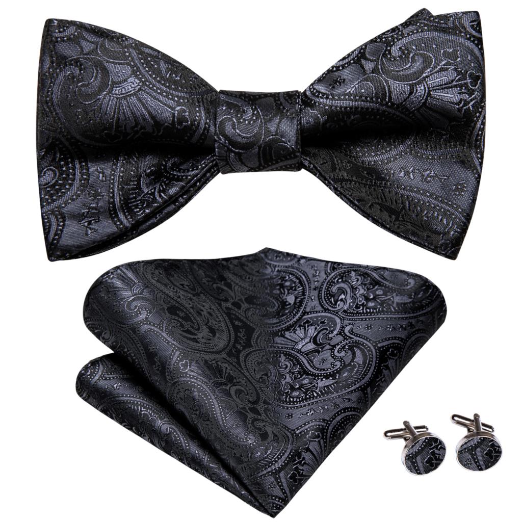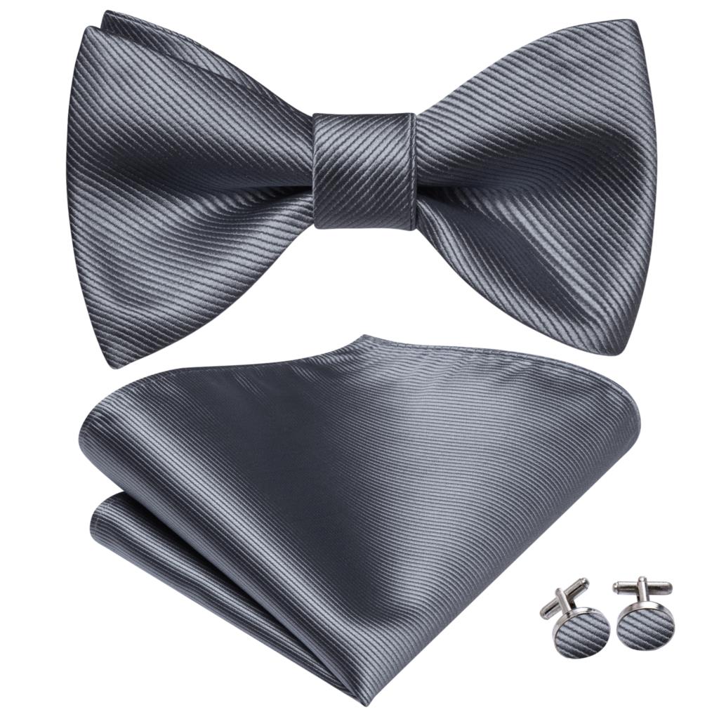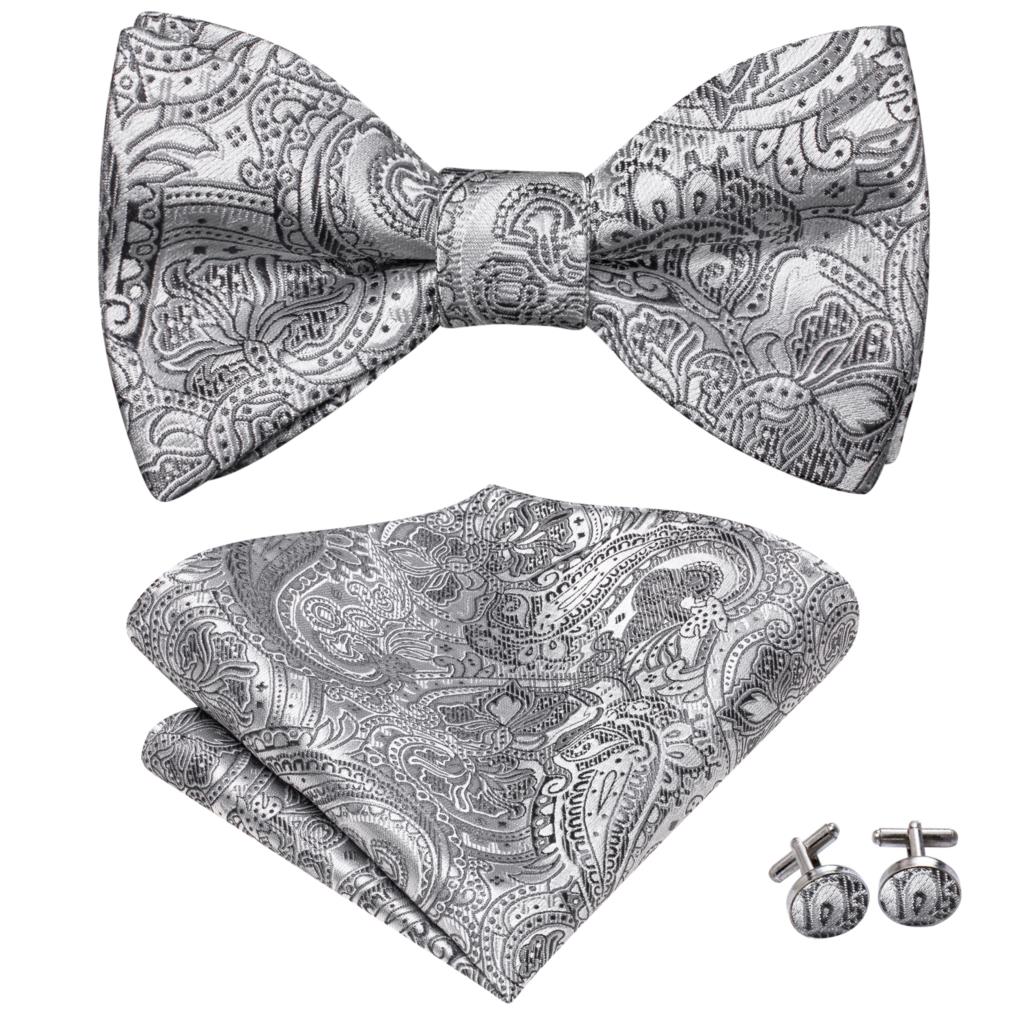 Hi-Tie Серые Серебряные шелковые галстуки-бабочки для мужчин карманные Квадратные Запонки мужские галстуки-бабочки модные Свадебная деловая Вечеринка дизайнерские жаккардовые