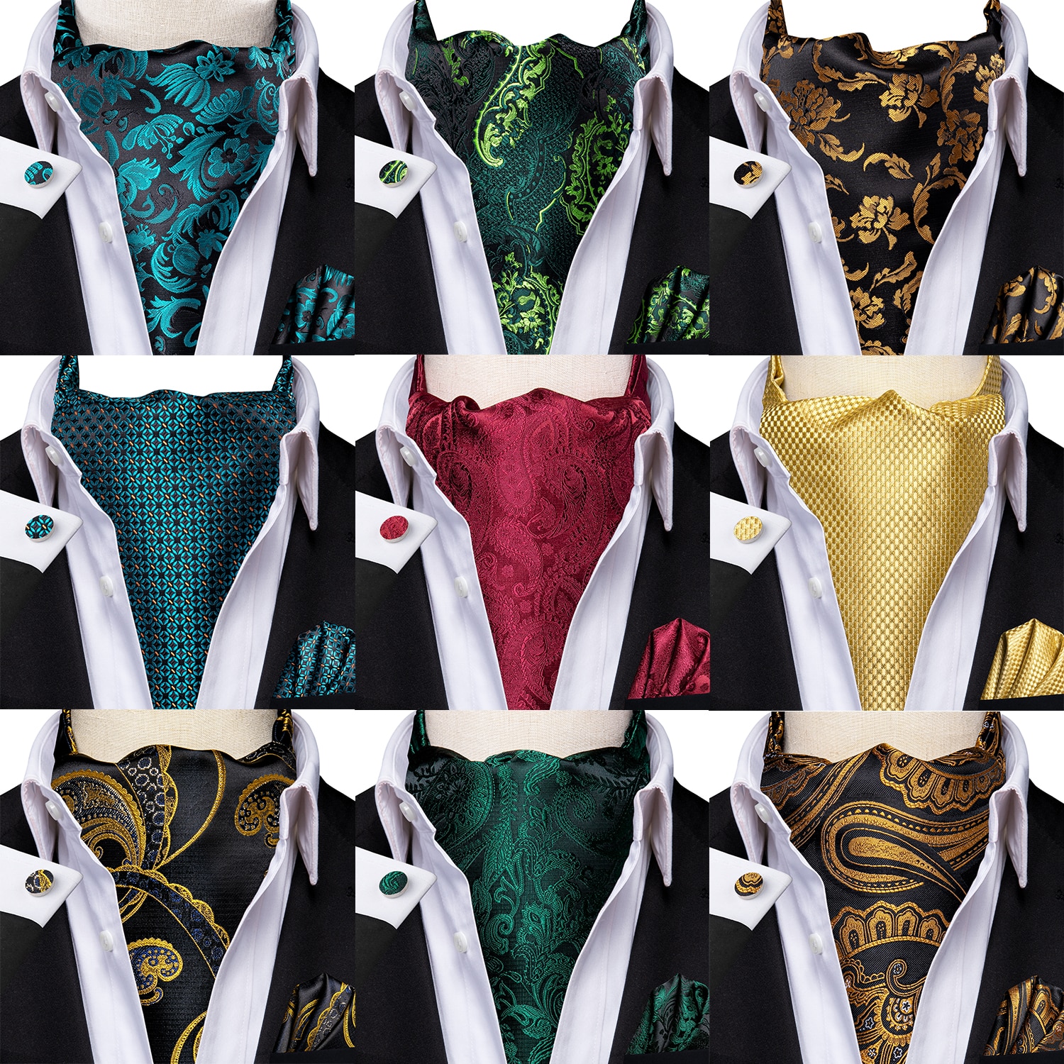 Sale Item Men's Ascot pocket square cufflinks set