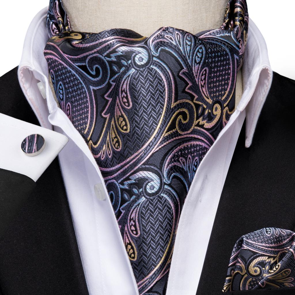 Hi-Tie шелковые мужские носовой платок Ascot Запонки Набор жаккардовый винтажный галстук оптовая продажа для мужчин Золотой синий красный фиолетовый розовый зеленый белый