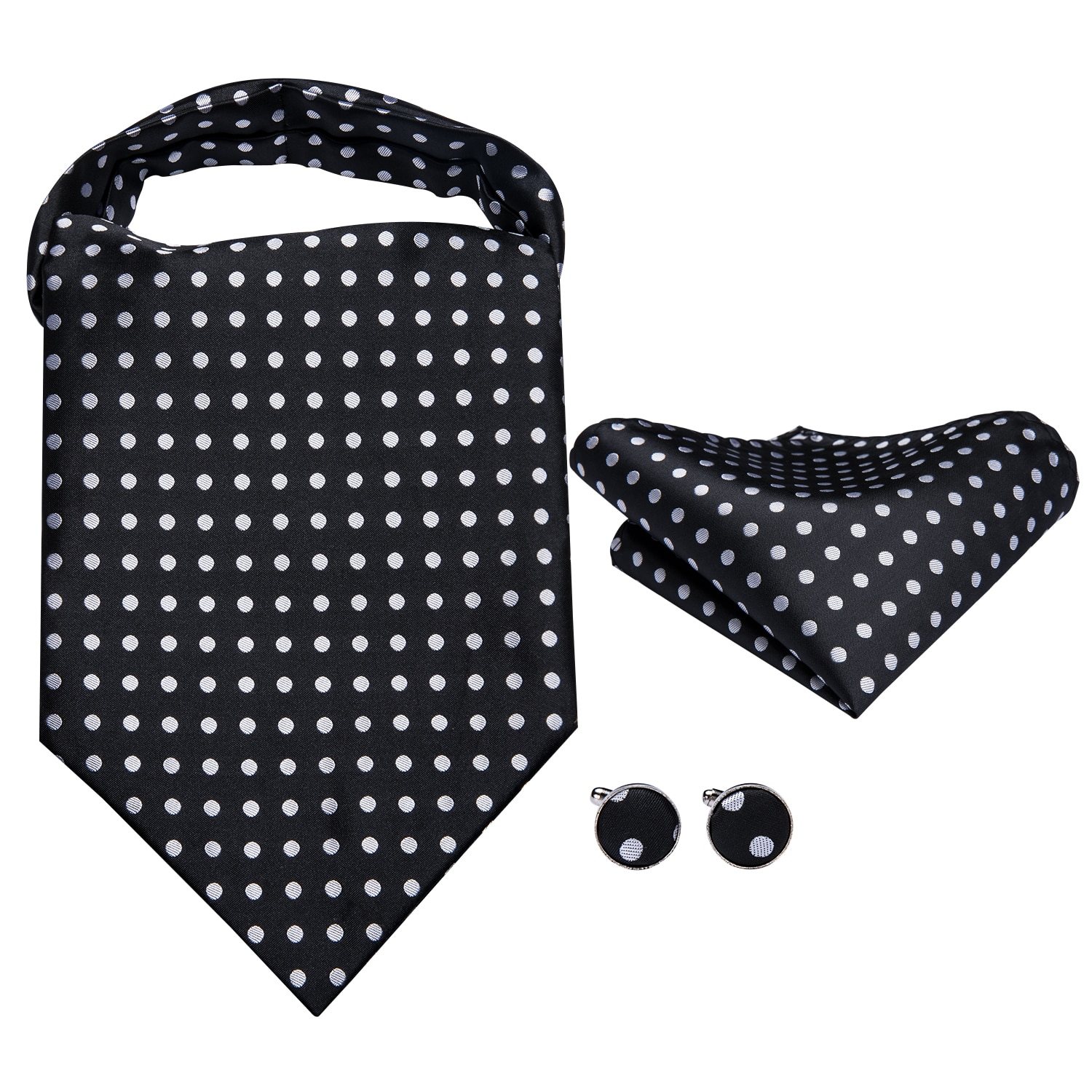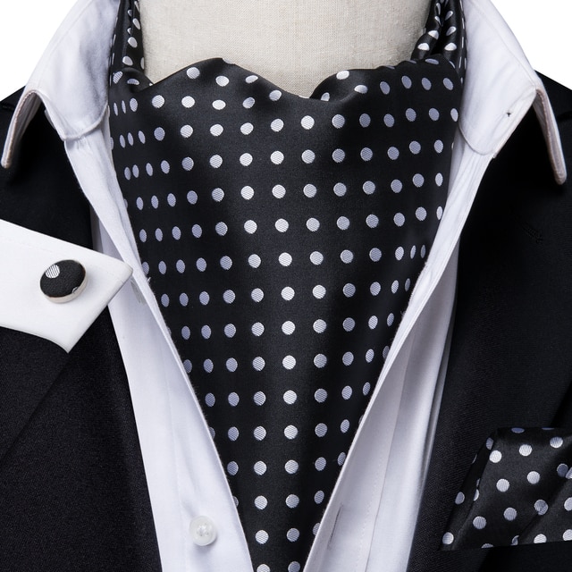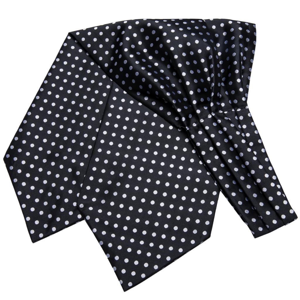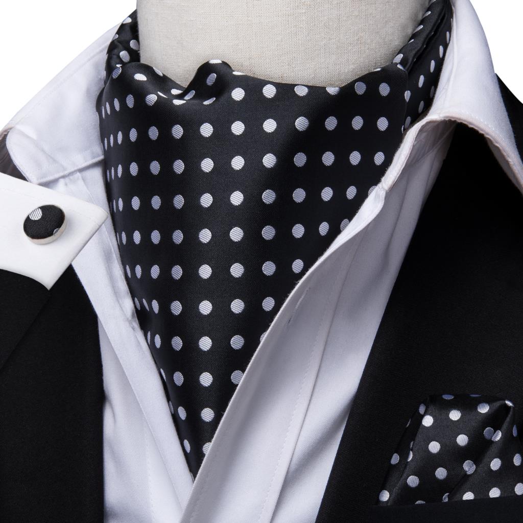 Hi-Tie шелковые винтажные мужские Ascots Hanky запонки набор черно-белые точки галстук костюм мужской жаккард Ascot высокое качество подарок
