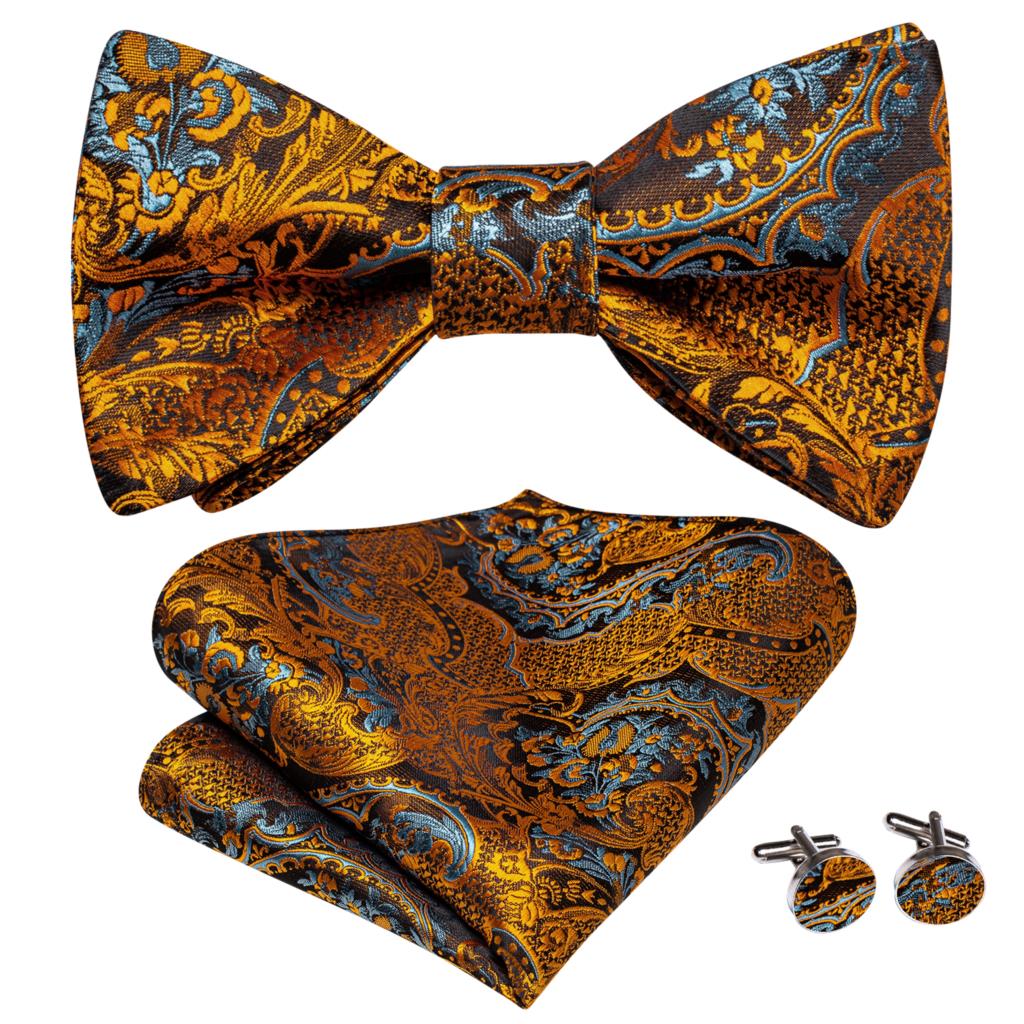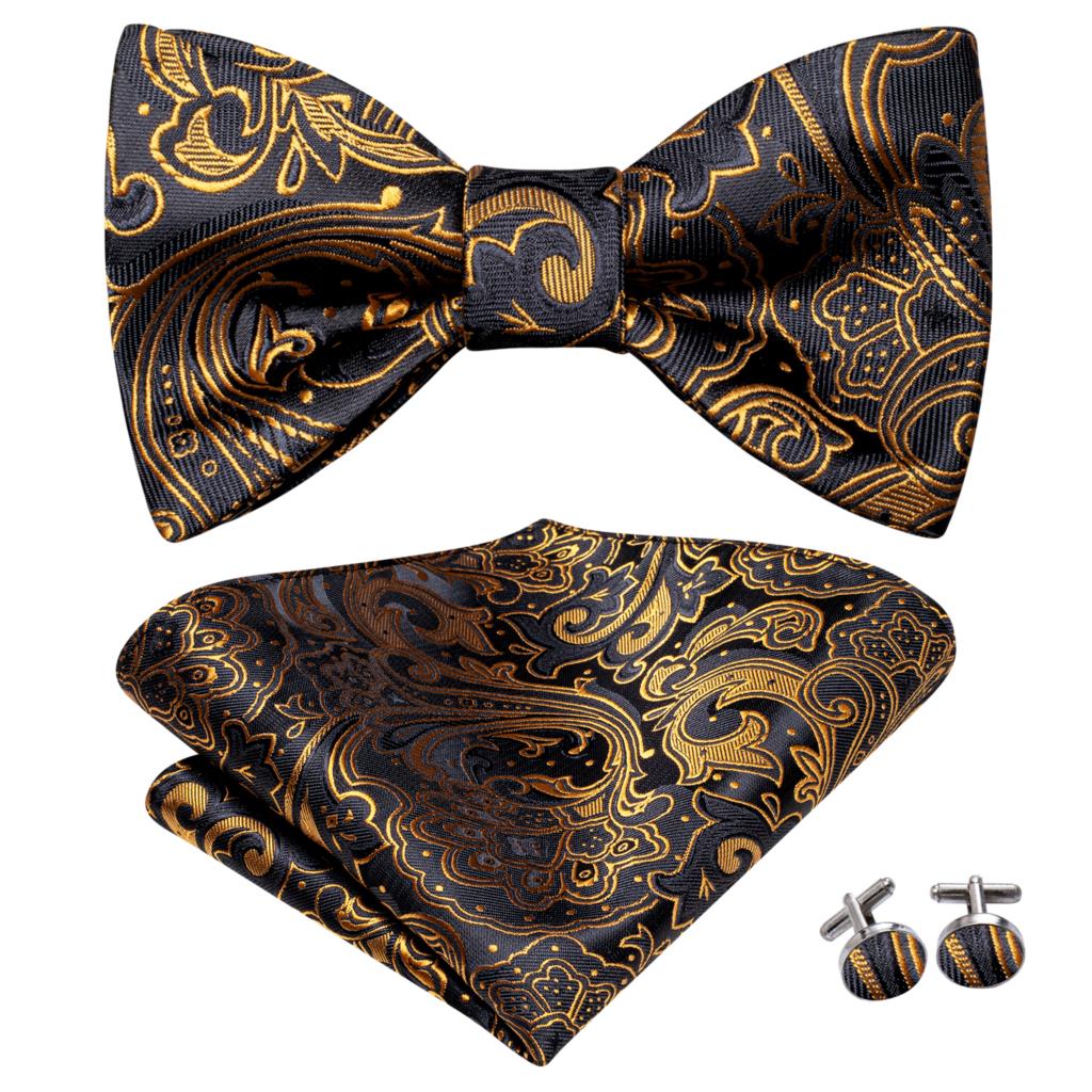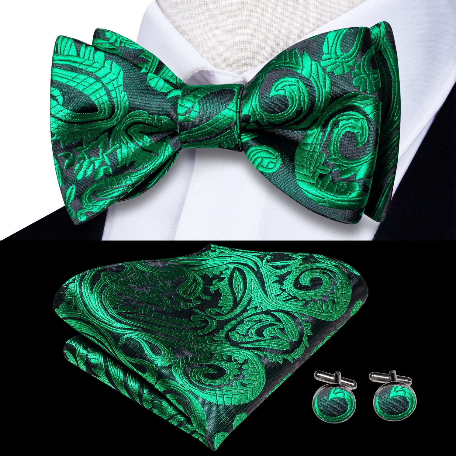 Hi-Tie Золотой Зеленый Шелковый мужской галстук-бабочка Hanky запонки набор Мужской Жаккардовый Цветочный Пейсли бабочка узел, галстук-бабочка свадебный бизнес
