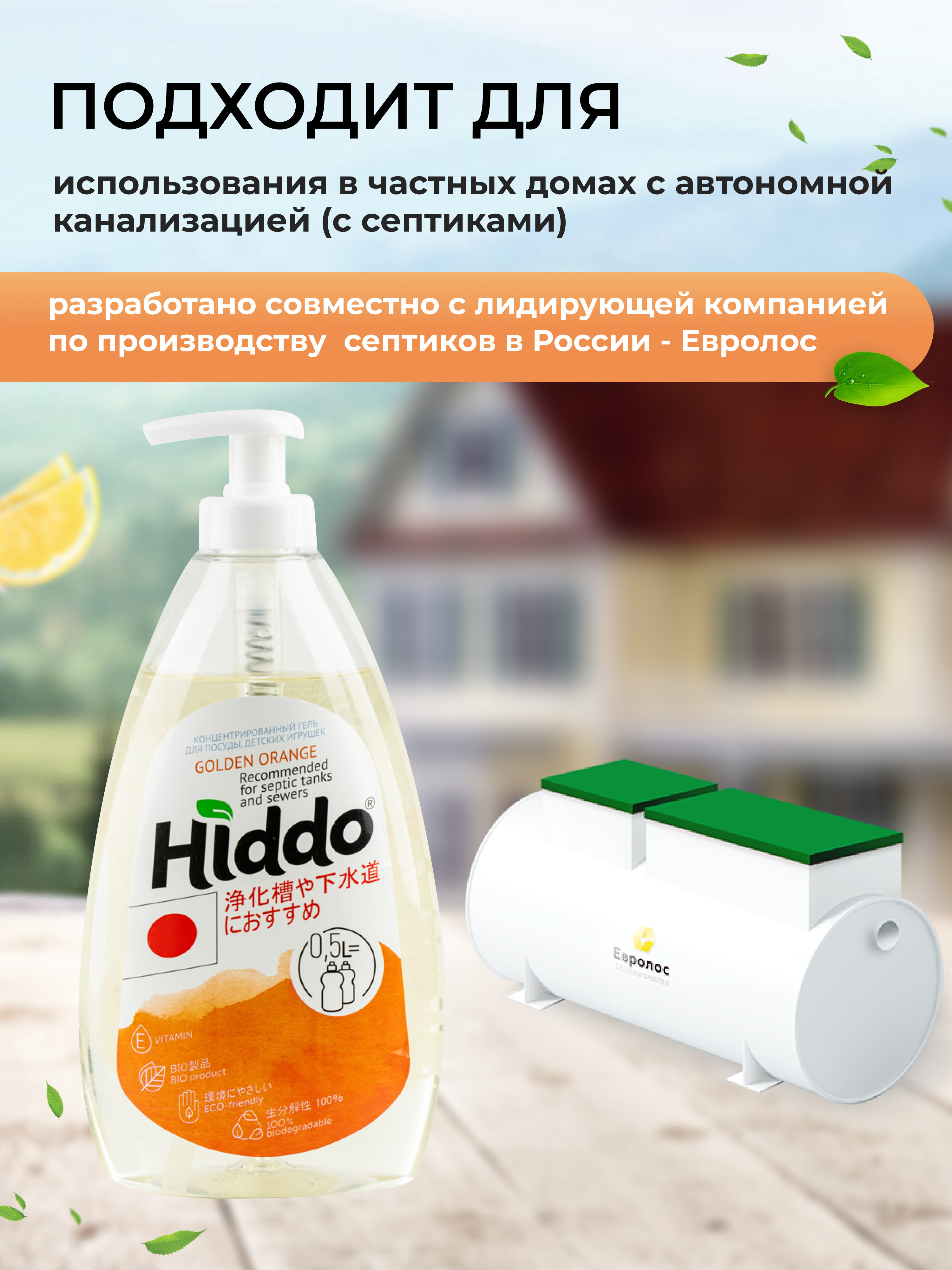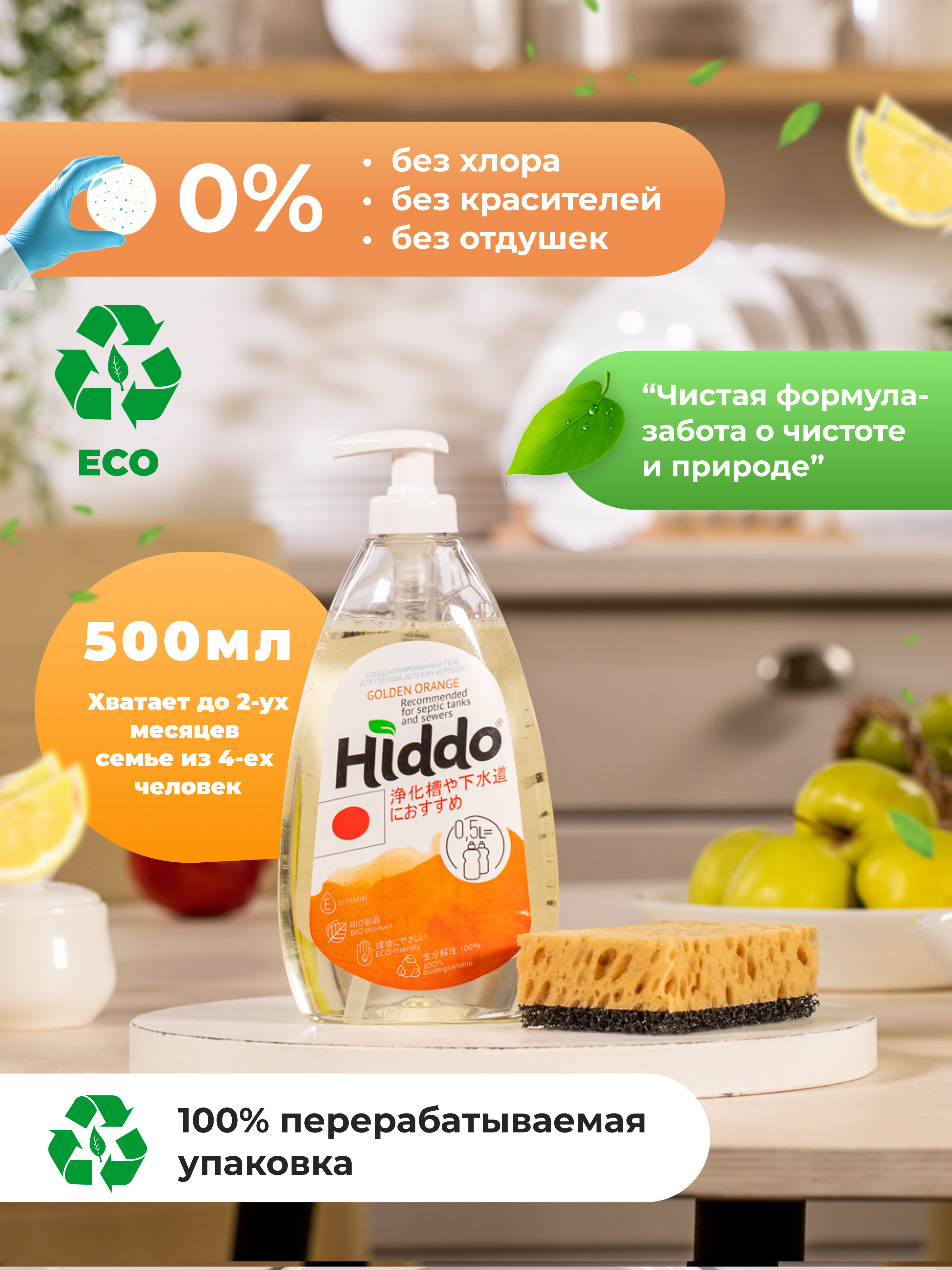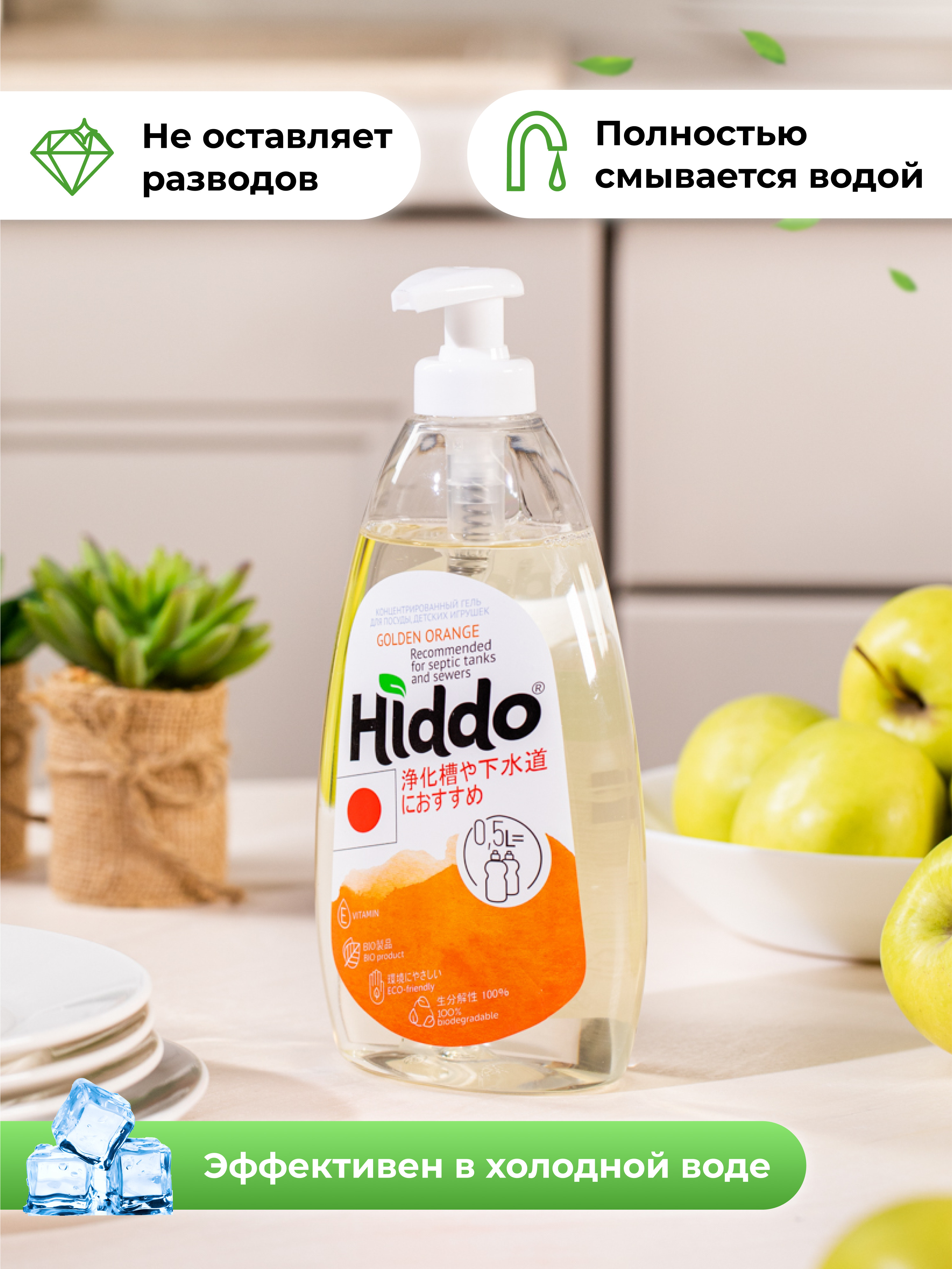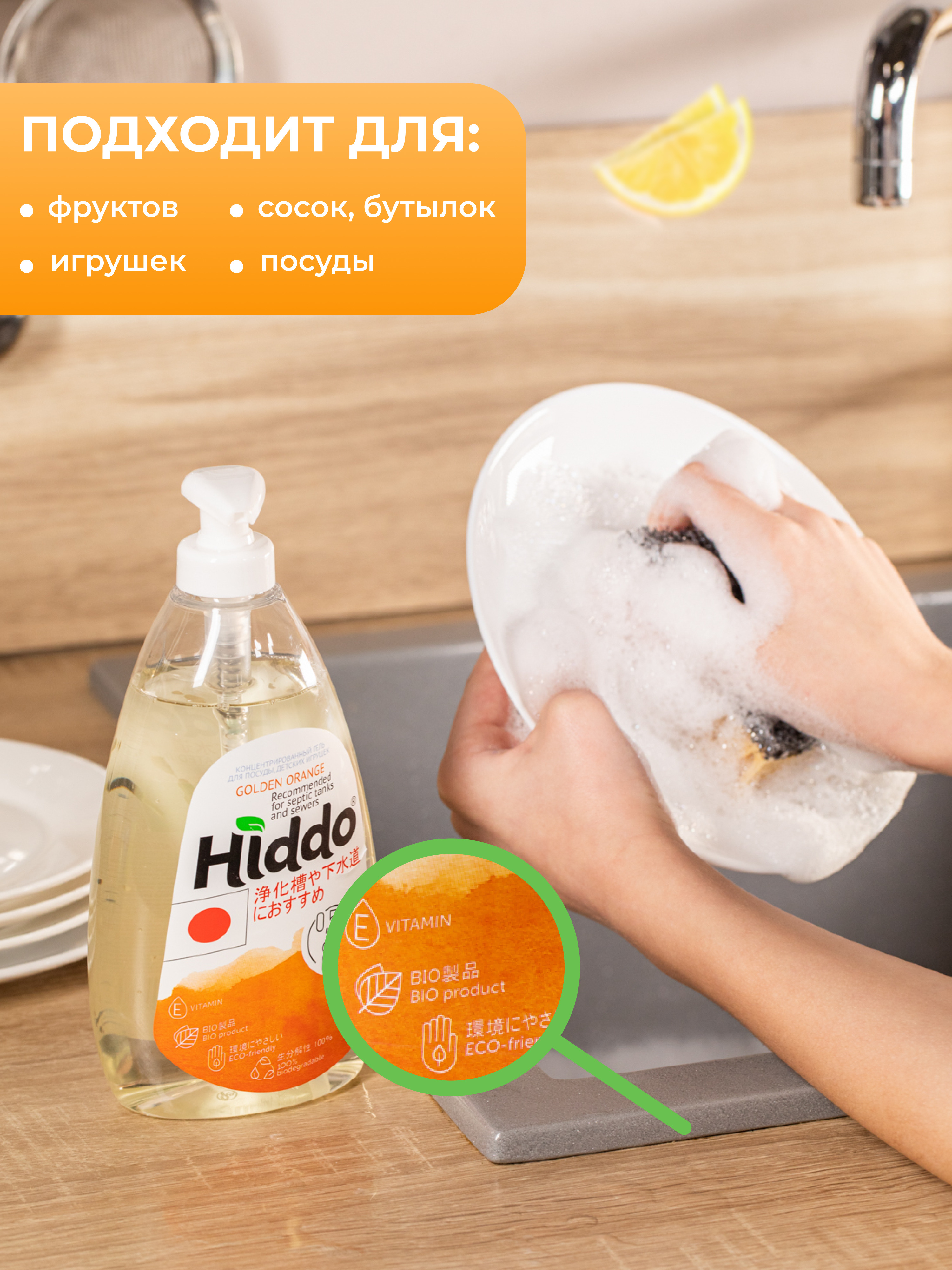 Hiddo концентрированный гель для мытья посуды, фруктов, детских игрушек, Золотой апельсин, 0,5 л