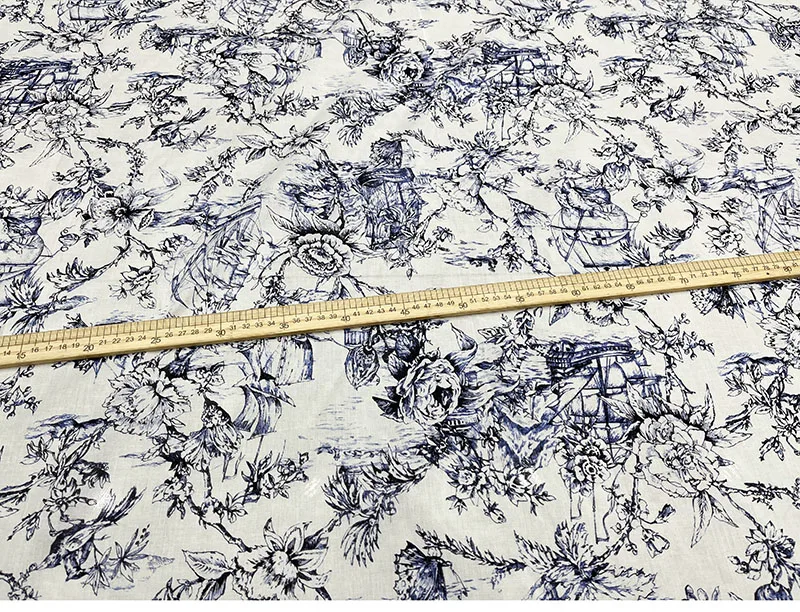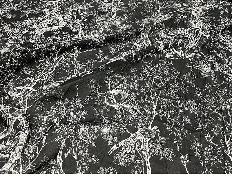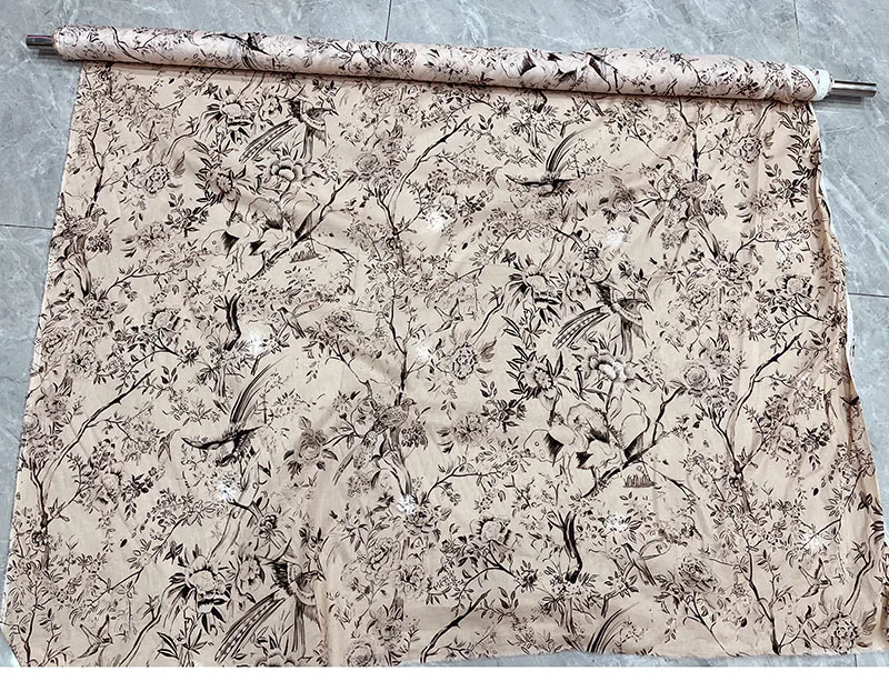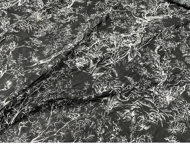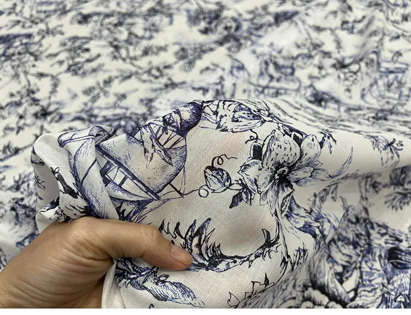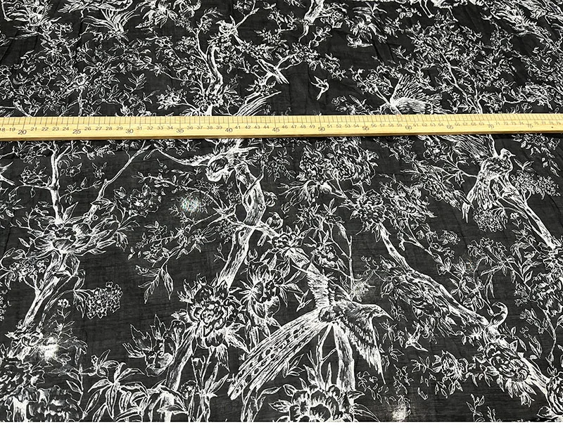 High-quality Thin Cotton Dress Summer Black Beige Blue Printed Fabric Flower and Bird Digital Brand Handmade Diy Fabrics