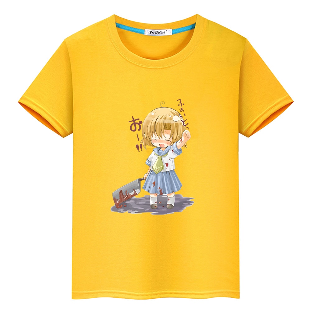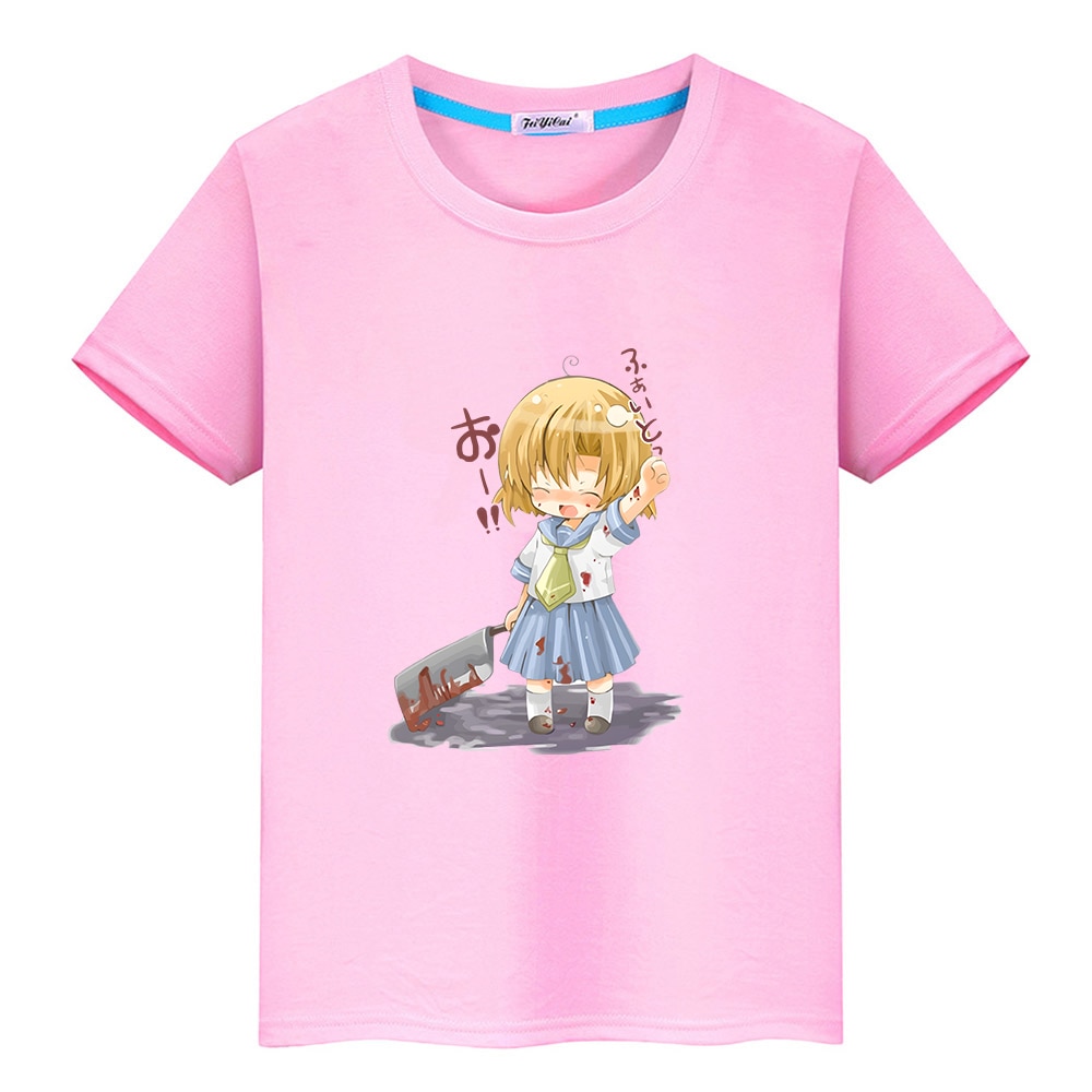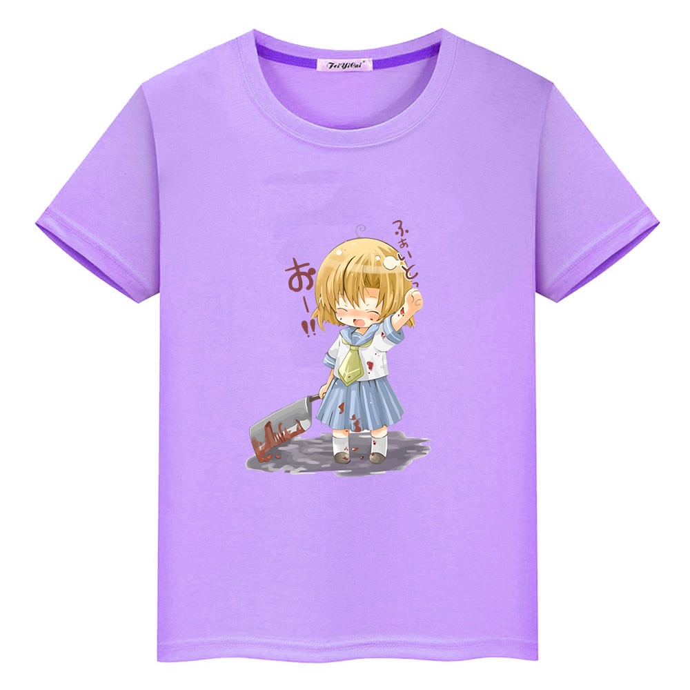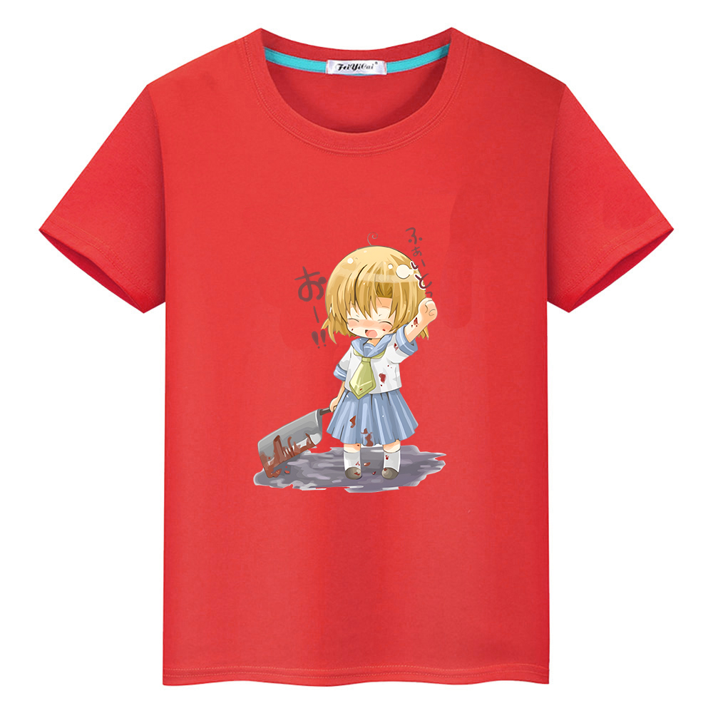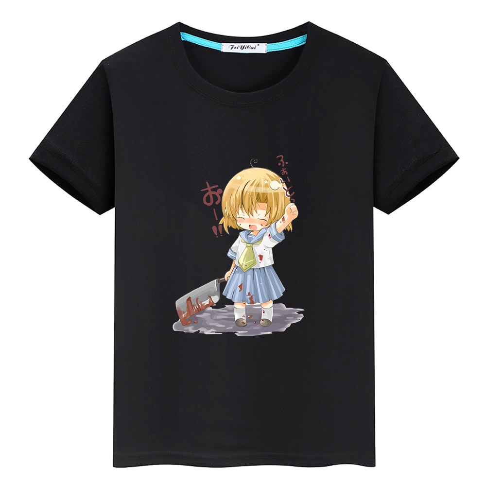 Higurashi, футболки из 100% хлопка с коротким рукавом, футболка с японским аниме графическим принтом, повседневные футболки для мальчиков и девочек