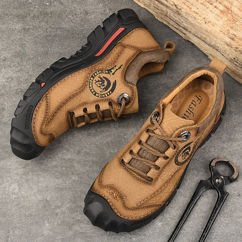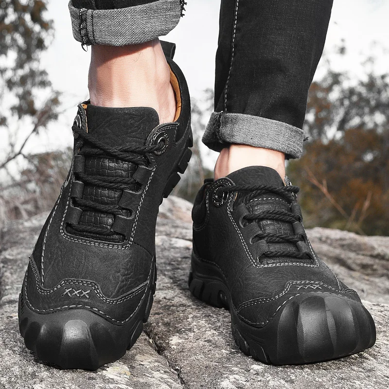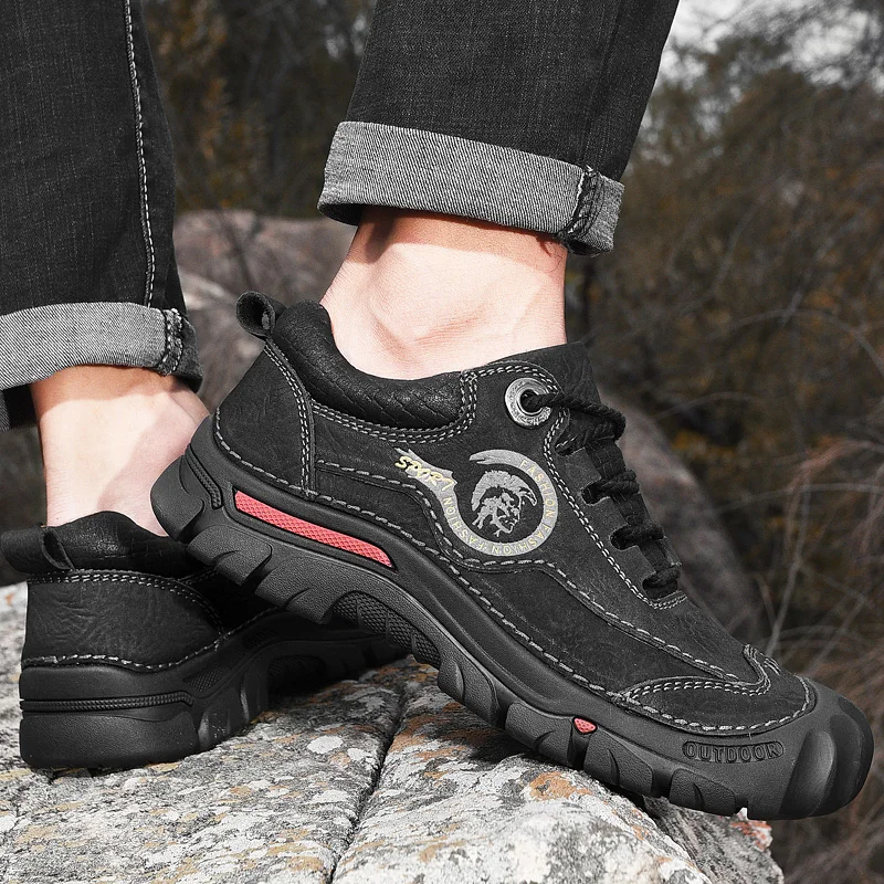 HIKEUP/Новинка; Высококачественная Мужская Уличная обувь; Сезон весна; Обувь для альпинизма; Кожаные кроссовки для пеших прогулок; Прогулочная обувь для мужчин; Обувь против столкновений
