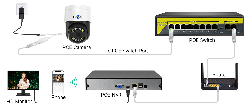 Его необходимо использовать с новейшим сетевым видеорегистратором Hiseeu POE, чтобы отразить эту функциюУдобный PTZУмный режим ночного видения