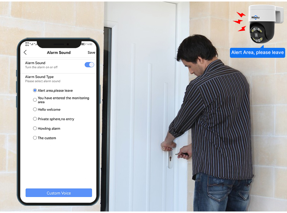 Работа в одиночку через 12V1A SupplyДвусторонняя аудиосвязь с микрофоном и динамикомПрожектор и звуковая сигнализацияНа месте звук сигнала тревоги для вариантаНастраиваемые события обнаружения движенияПоддержка обнаружения лиц
