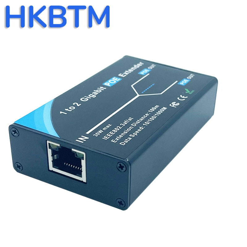 HKBTM гигабитный 2-портовый удлинитель POE, IEEE 802.3af/at PoE + стандарт, 10/100/1000 Мбит/с, ретранслятор POE 100 метров (328 фута), удлинитель