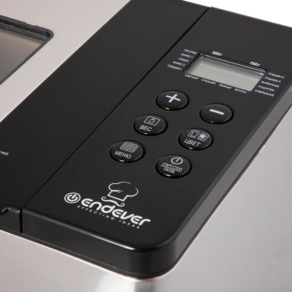 Восхитительный внешний вид корпуса в черно-стальном цвете, элегантное смотровое окошко и глянцевые кнопки управления с большим дисплеем заставляют хлебопечи ENDEVER SkyLine MB-54 Вас влюбиться в нее. А такие функции как таймер отсрочки старта до 15 часов и автоподогрев до 60 минут помогут приготовить вкусный и ароматный хлеб Вам к завтраку. Как же замечательно, когда по утрам в доме царит аромат настоящего свежего хлеба. Также вы сможете придать своей выпечке один из трех вариантов цвета корочки и сможете выбрать один из двух весов для выпечки: 500 или 750 грамм. Прорезиненные ножки позволят зафиксировать хлебопечь на любой поверхности. В случае непредвиденных ситуаций у хлебопечи ENDEVER SkyLine MB-54 предусмотрена функция сохранения текущих настроек программы и вы можете быть уверены, что ничто не помешает Вам процессу приготовления Вашей любимой выпечки.