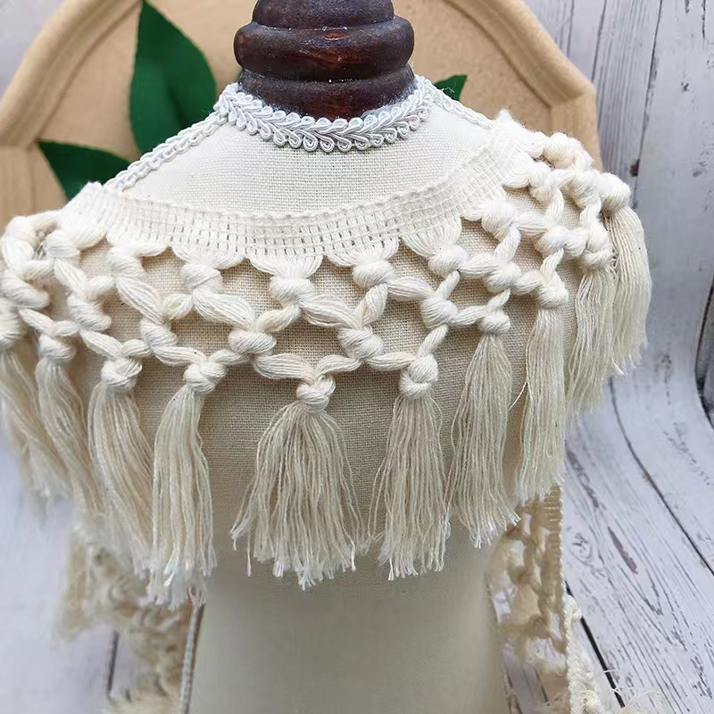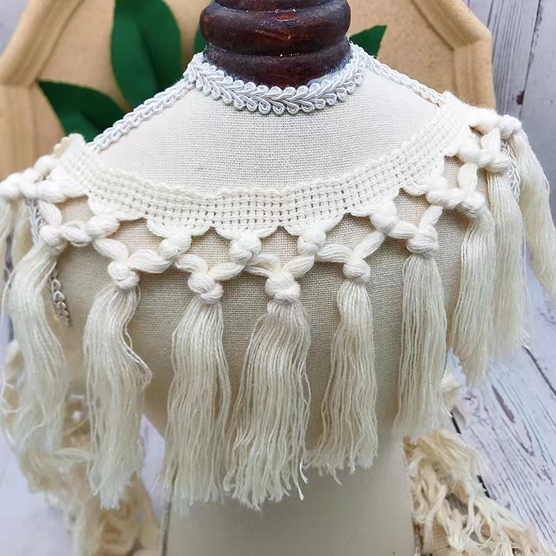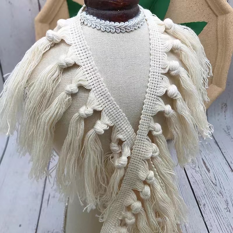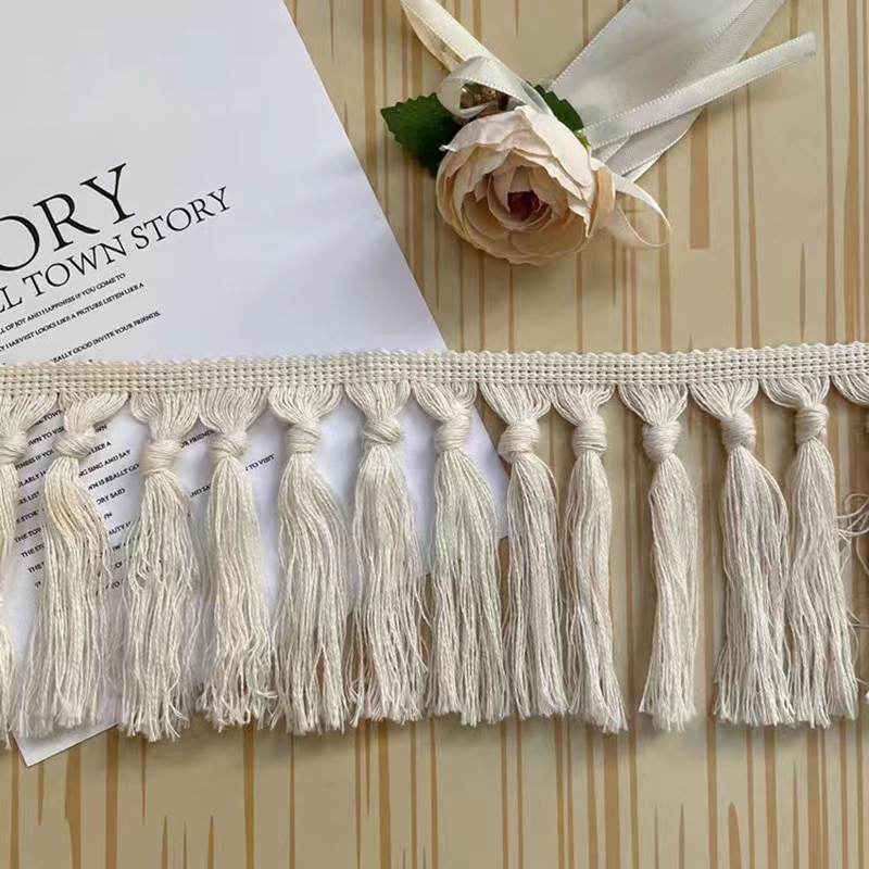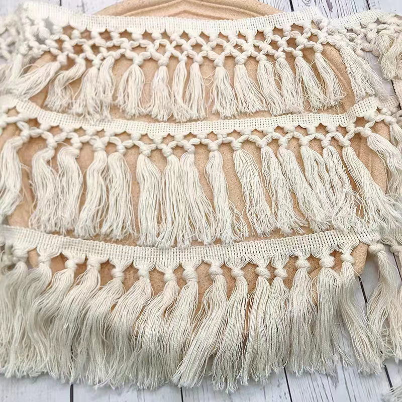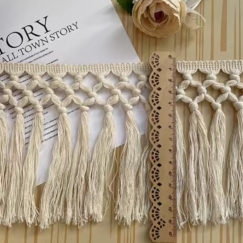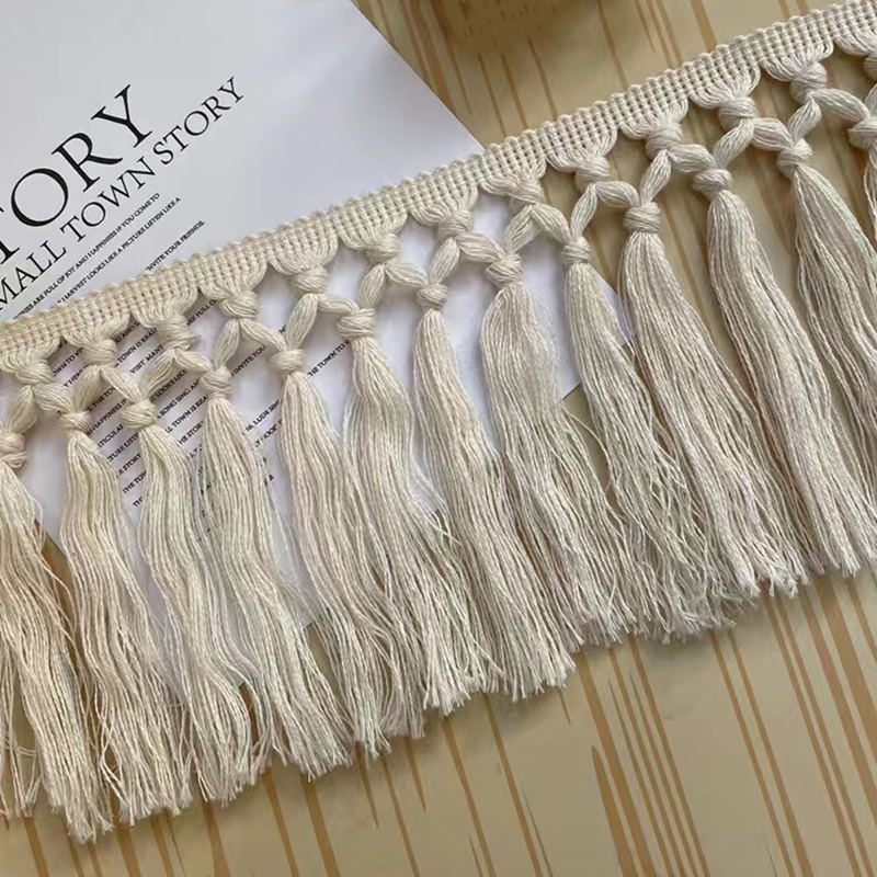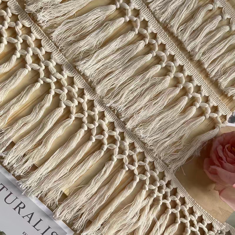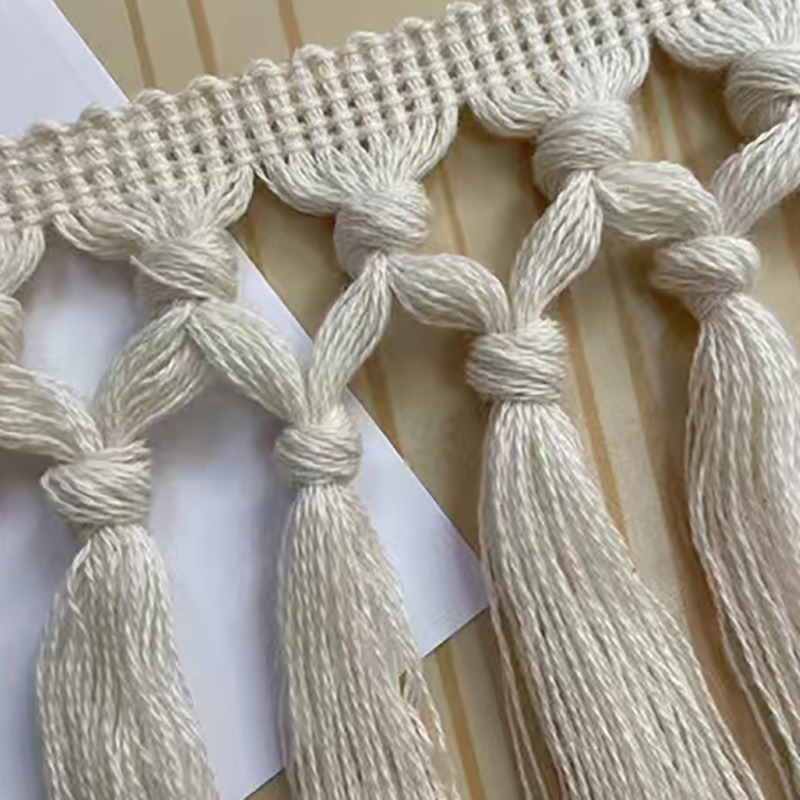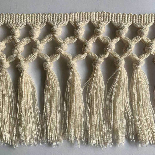Feature 7 Wide Beige Cotton Thread Braided Beard Tassel Lace