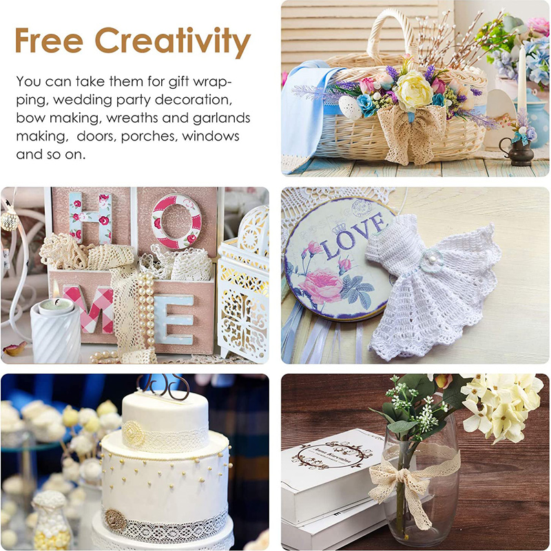 4.For multiple purposes: these crochet lace ribbons with scalloped edge are suitable for various purposes, you can take them for gift wrapping, wedding party decoration, bow making, wreaths and garlands making, ideal decorations for gift baskets, stairs, doors, porches, windows and so on,