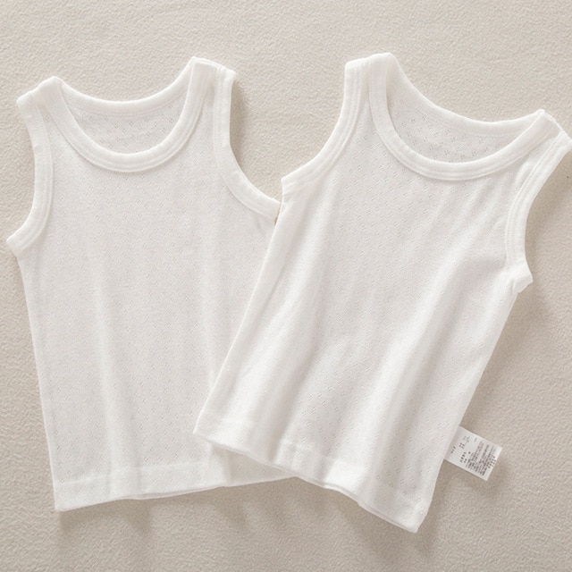 Хлопковая майка для мальчиков и девочек 2 шт./партия, однотонные белые футболки без рукавов, не флуоресцентные Базовые майки, лето 2023
