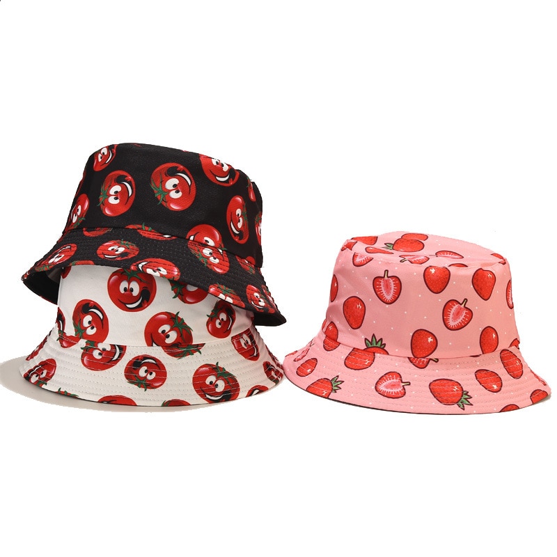 Хлопковая Панама с принтом клубники, шляпа рыбака, уличная дорожная шляпа, солнцезащитные кепки, шляпы для девочек и женщин