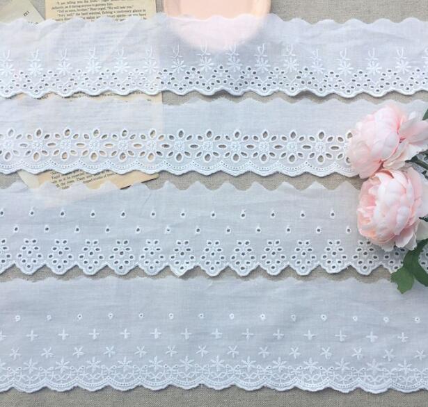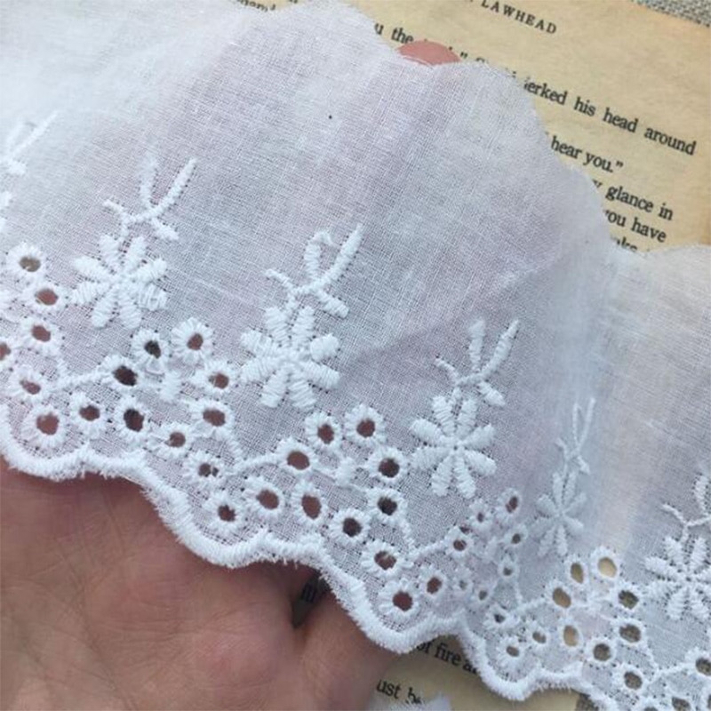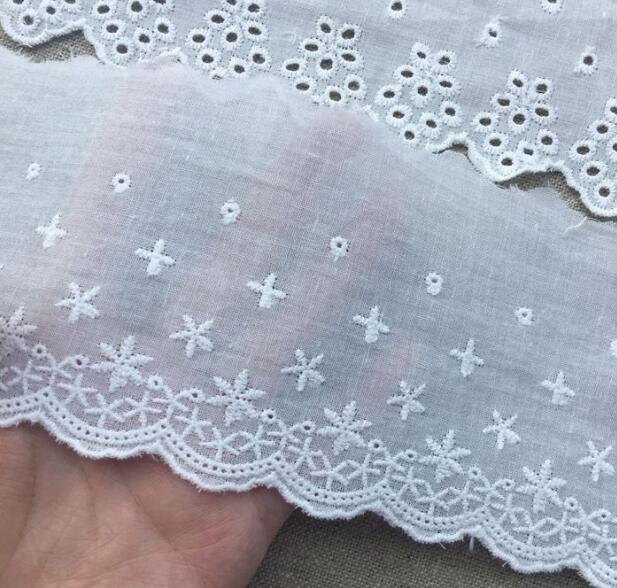 Хлопковая вышитая кружевная ткань с белыми цветами