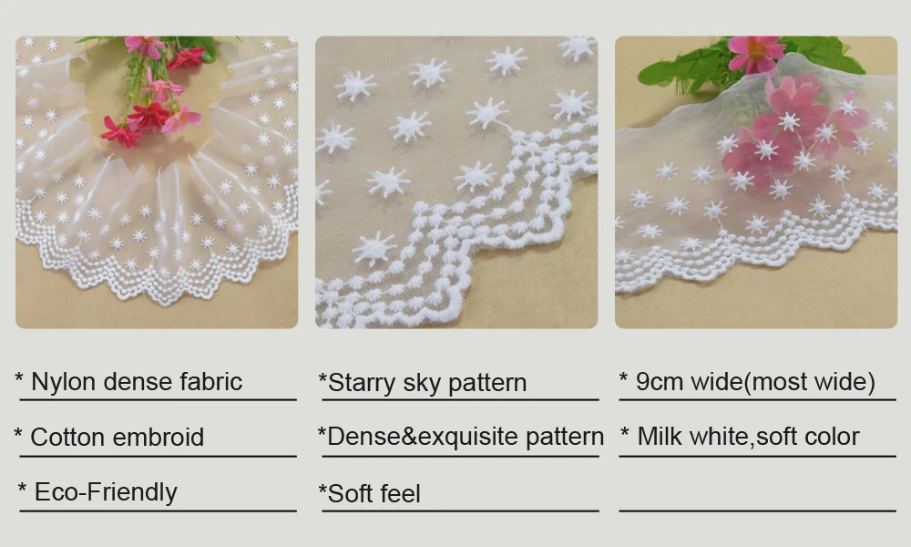 Название продукта:Хлопковое вышитое кружево шириной 9 см