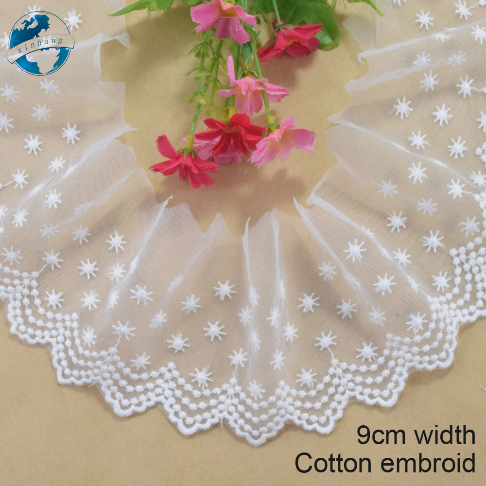 Хлопковая вышивка 9 см, белая кружевная французская сетчатая лента, ткань из гипюра «сделай сам», отделка, основовязание, Швейные аксессуары, Кукольное платье #4342