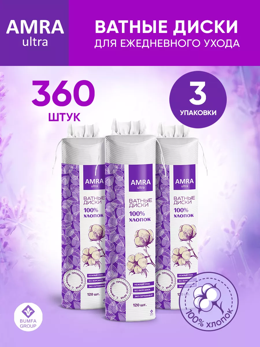 Количество предметов в упаковке 360 шт; 3 упаковки ватных дисков по 120 штук (всего 360 шт)