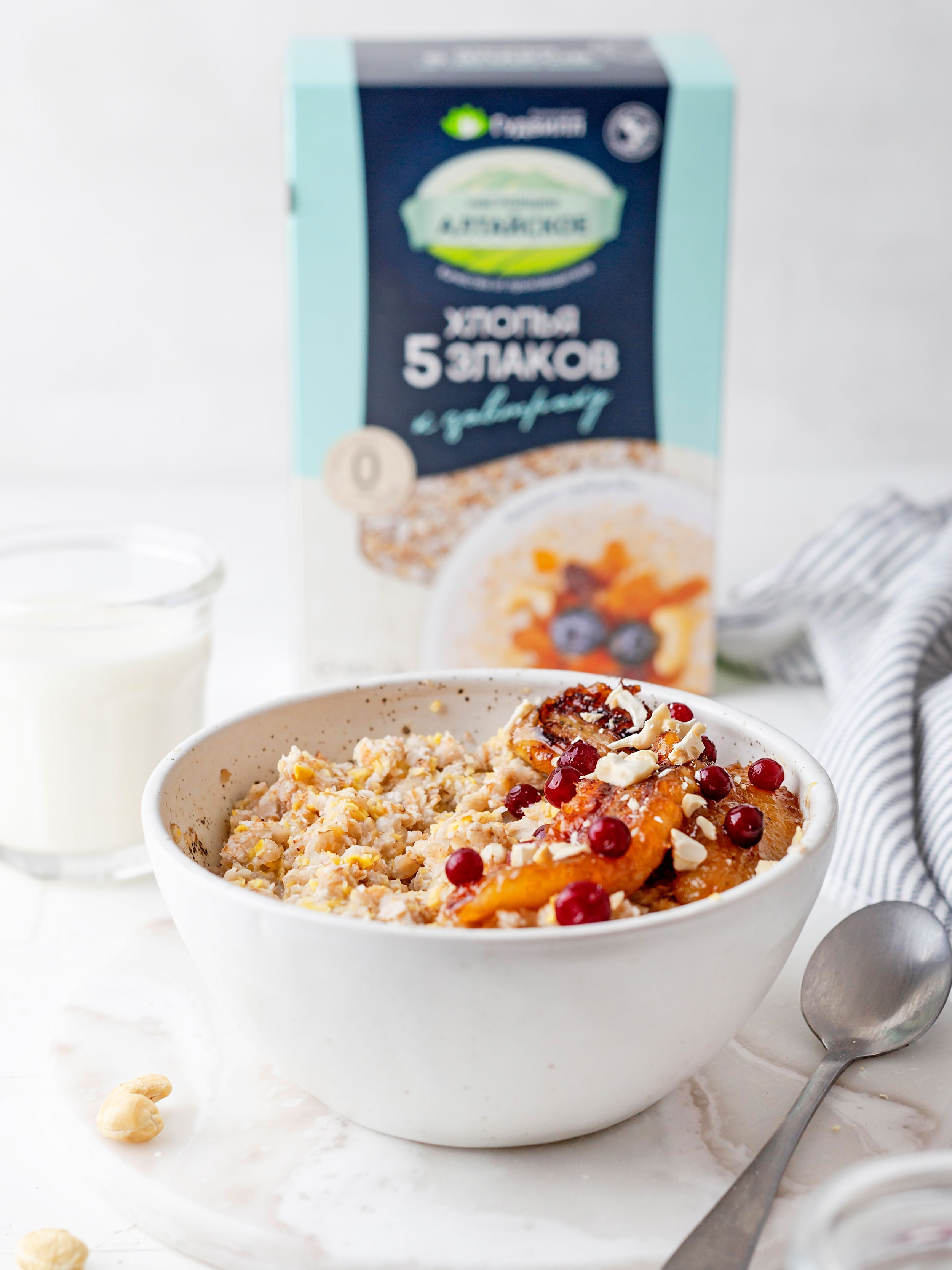 Описание: Агрохолдинг Гудвилл – крупный производитель полного цикла с Алтая, где чистая экология и мягкий климат – основа для выращивания злаков. Это позволят передать максимум природной пользы в идеально сбалансированном сочетании овсяных, гречневых, пшеничных, ячменных и кукурузных хлопьев. Многозерновая каша станет отличным полезным завтраком для всей семьи. Порадуйте себя и своих близких оригинальным завтраком, который по достоинству оценят и взрослые, и дети! Способ приготовления: залить кипятком или горячим молоком в пропорции 1:1,5. Дать настояться под крышкой в течение 5 минут. Добавить по вкусу мёд, орехи, фрукты или ягоды.