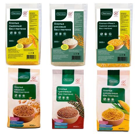 Хлопья без глютена Диетика Набор 6 шт по 300г