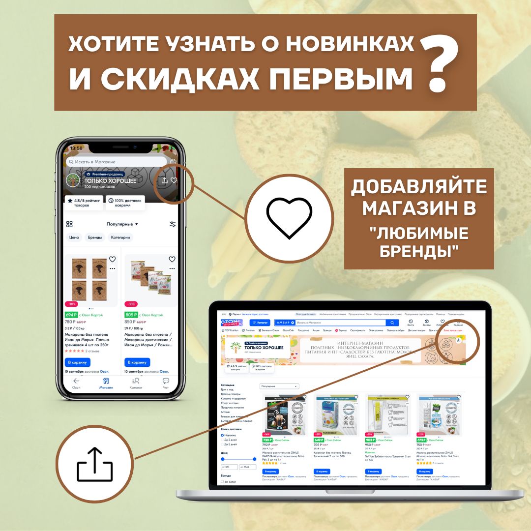 Особенности напитков, продуктов питания: Вегетарианский продукт, Гипоаллергенный продукт, Диетический продукт, Натуральный продукт, Постный продукт