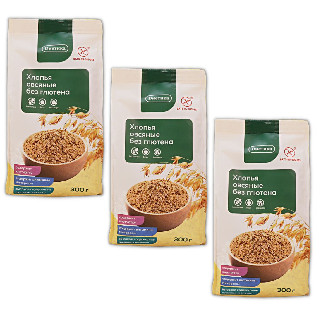 Хлопья без глютена Диетика овсяные 3 шт по 300г