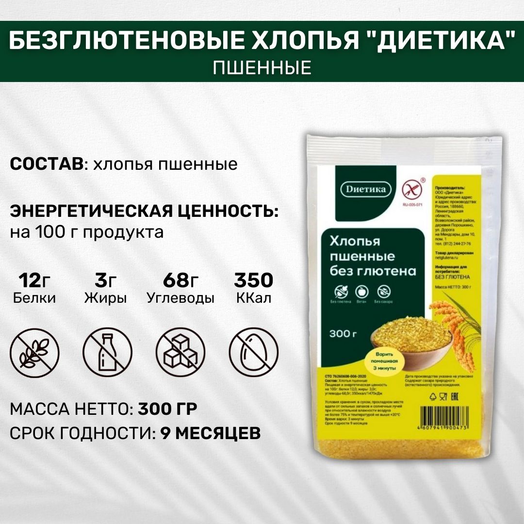 Хлопья без глютена Диетика Пшённые 3 шт по 300г