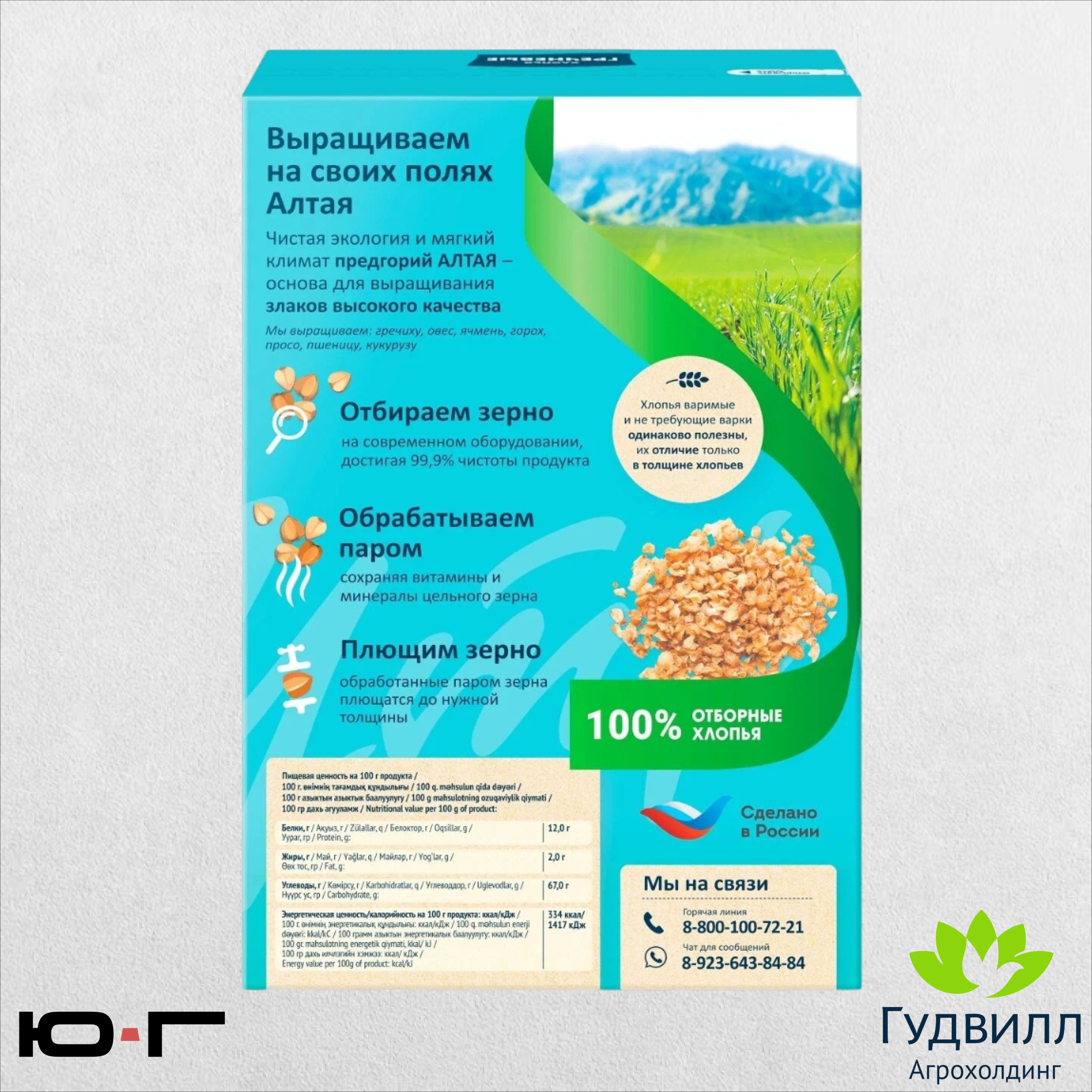 Описание: Агрохолдинг Гудвилл – крупный производитель полного цикла с Алтая, где чистая экология и мягкий климат – основа для выращивания злаков. Это позволят передать максимум природной пользы в готовом продукте. Хлопья не требуют варки, их достаточно залить кипятком/горячим молоком. Хлопья не требующие варки и варимые одинаково полезны – их отличие лишь в толщине хлопьев. Употребляя гречневые хлопья на завтрак, Вы заряжаете себя бодростью, энергией и настроением на целый день. Гречневые хлопья для тех, кто заботится о фигуре и выбирает здоровый образ жизни! Способ приготовления: залить кипятком или горячим молоком в пропорции 1:1,5. Дать настояться под крышкой в течение 5 минут. Добавить по вкусу соль, сливочное масло.