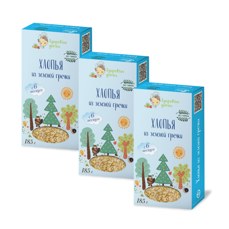 Хлопья из зеленой гречки Здоровые детки, 3шт по 185 гр