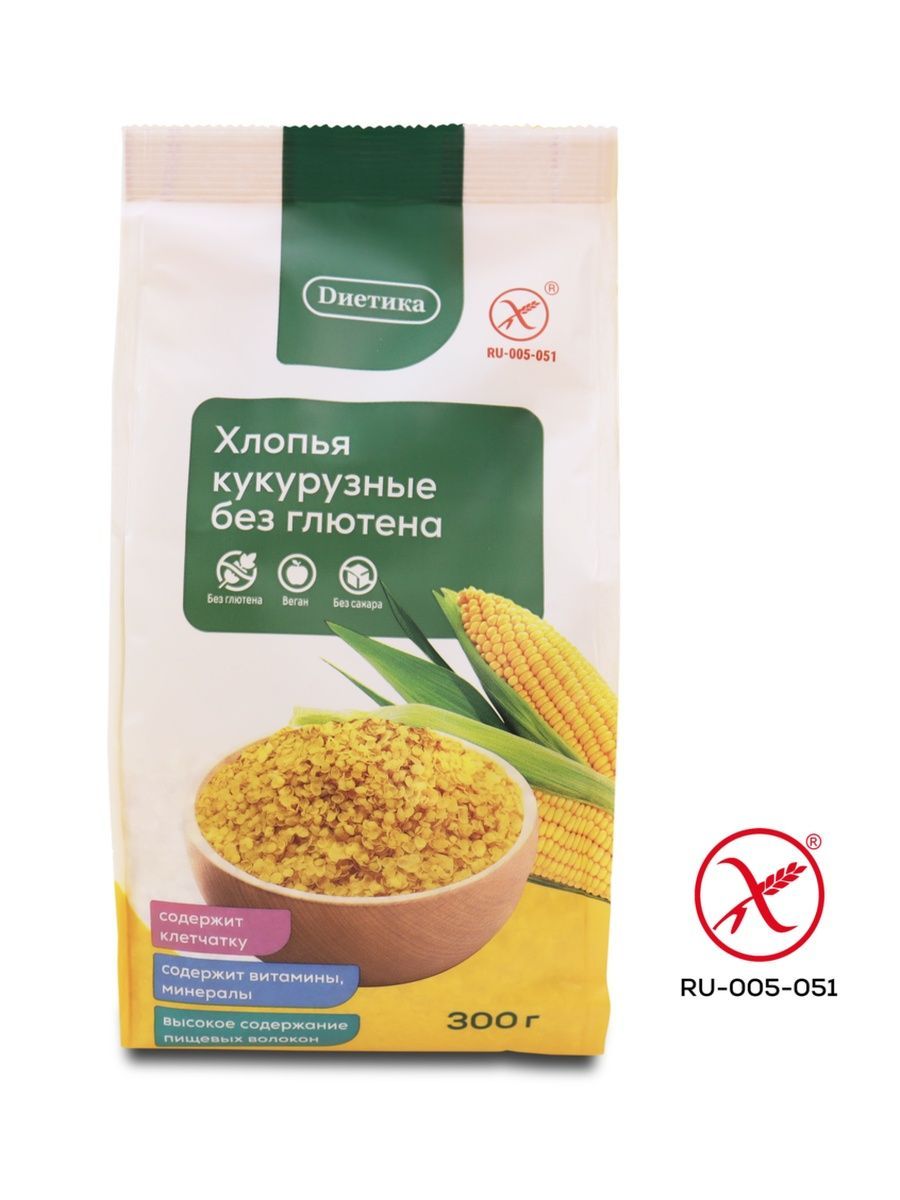 Описание: Кукурузные хлопья ТМ «Диетика» производятся из высококачественного сырья на европейском оборудовании. Не содержат глютена, имеют все необходимые сертификаты и официальный знак «Перечёркнутый колос».