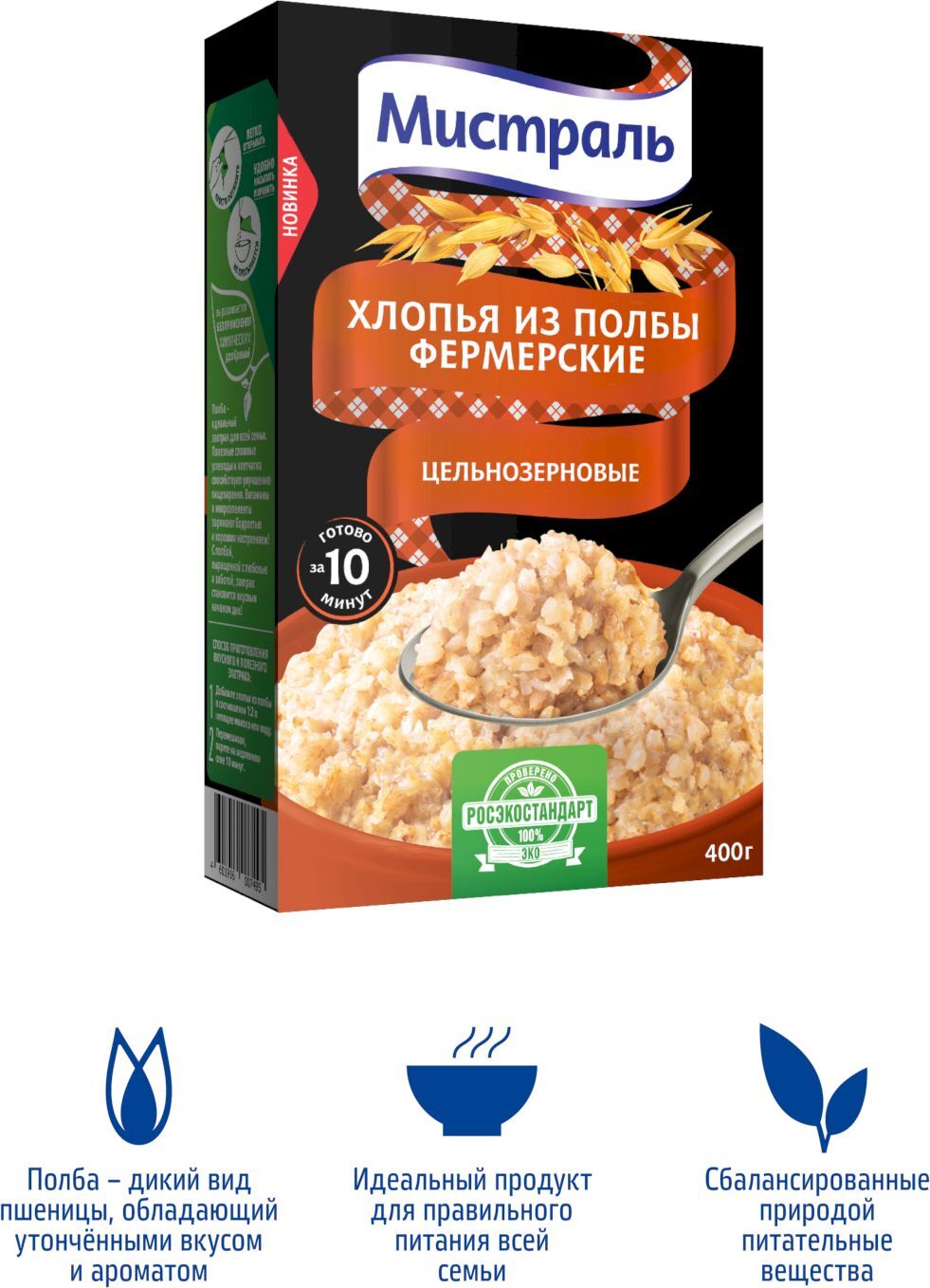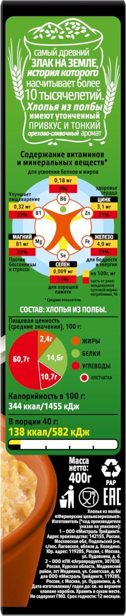 Хлопья Мистраль Фермерские, из полбы, 400 г