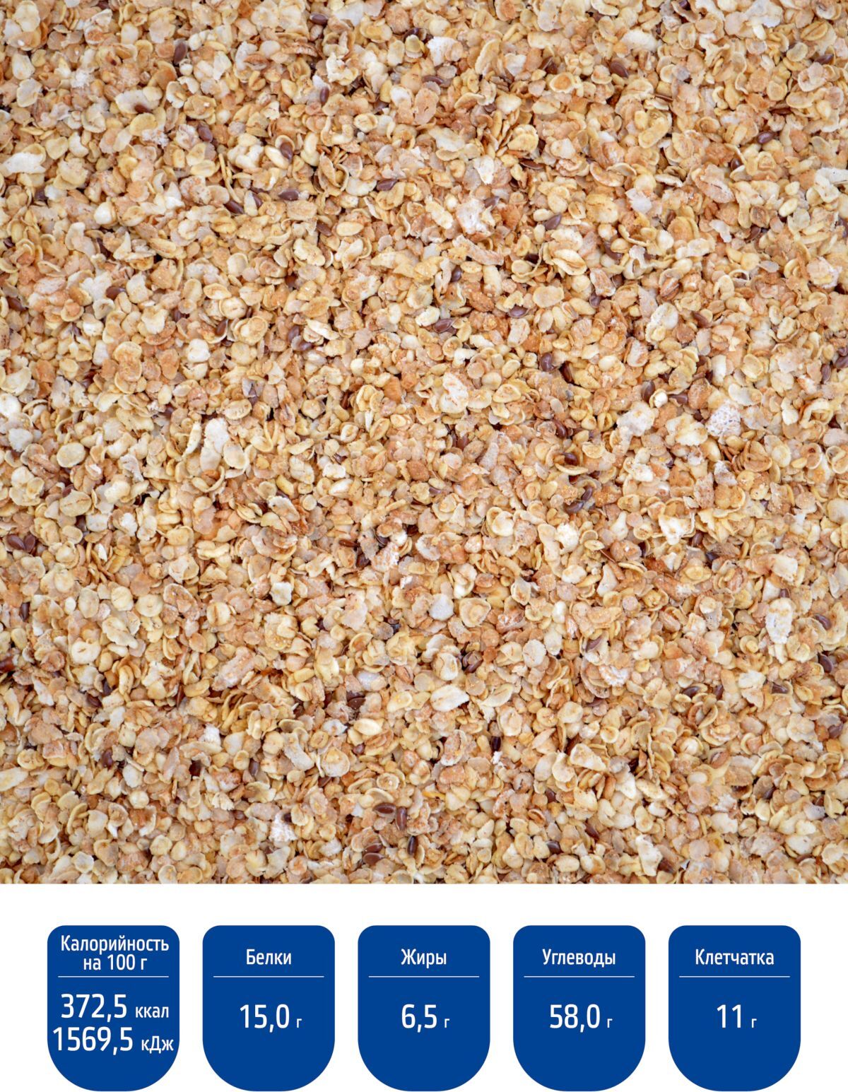 Хлопья из полбы, хлопья из крупы гречневой непропаренной, семена льна коричневого.