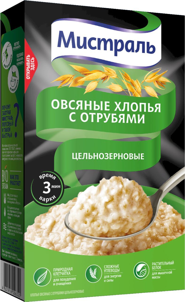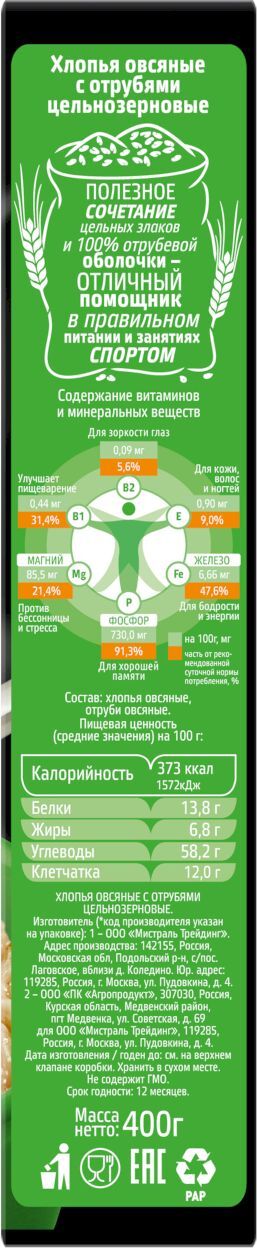 Хлопья Мистраль Овсяные с отрубями, 400 г