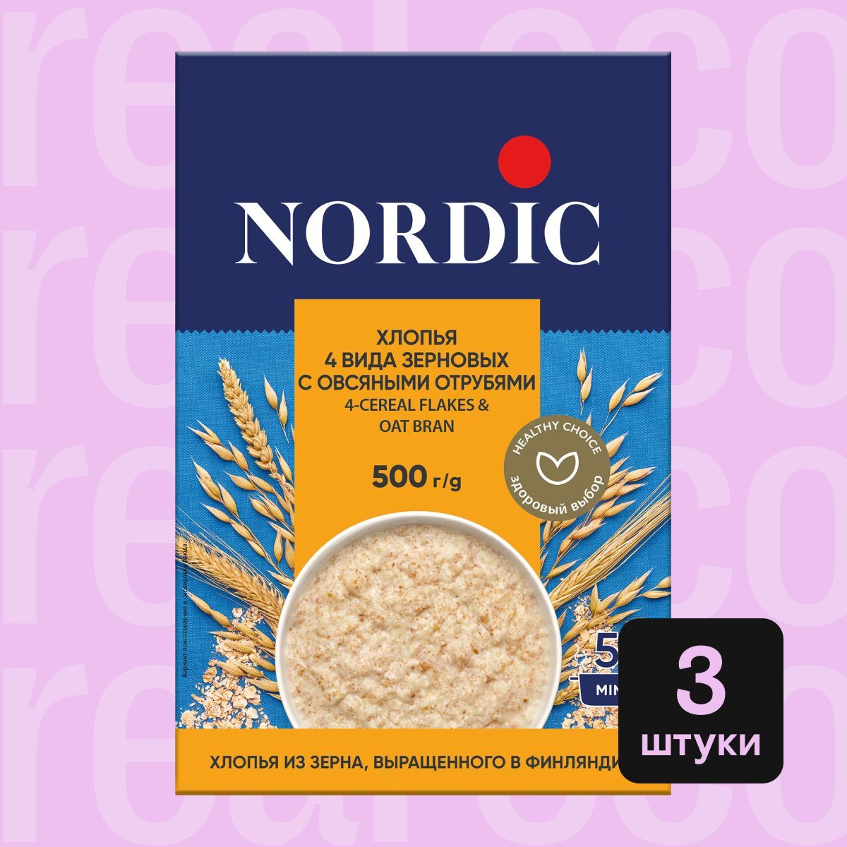 Хлопья Nordic 4 вида зерновых с овсяными отрубями, 3 упаковки по 500г
