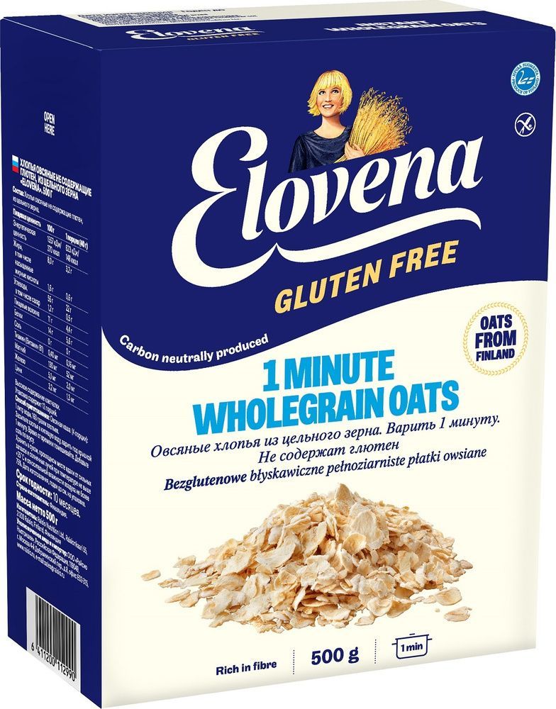 Каши, приготовленные из классических хлопьев Elovena Gluten Free, отличаются мягкой и при этом плотной консистенцией и особым деликатным кремово-ореховым вкусом, характерным для финского овса. Продукт хорош также для приготовления выпечки, пудингов и других блюд. Выращиваемое в экологически благоприятных условиях, на свежем северном воздухе, зерно для Elovena Gluten Free созревает медленнее и накапливает больше полезных веществ. А особые технологии бережного производства позволяют не только предотвратить попадание следов глютена в продукт, но и сохранить максимум замечательных питательных свойств овса. Хлопья содержат много пищевых волокон, богаты тиамином, магнием, железом, цинком.