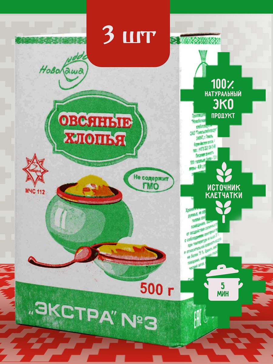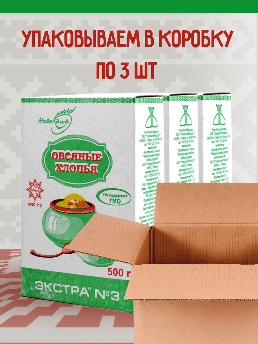 Хлопья овсяные Экстра №3 3шт по 0,5кг, НовоКаша