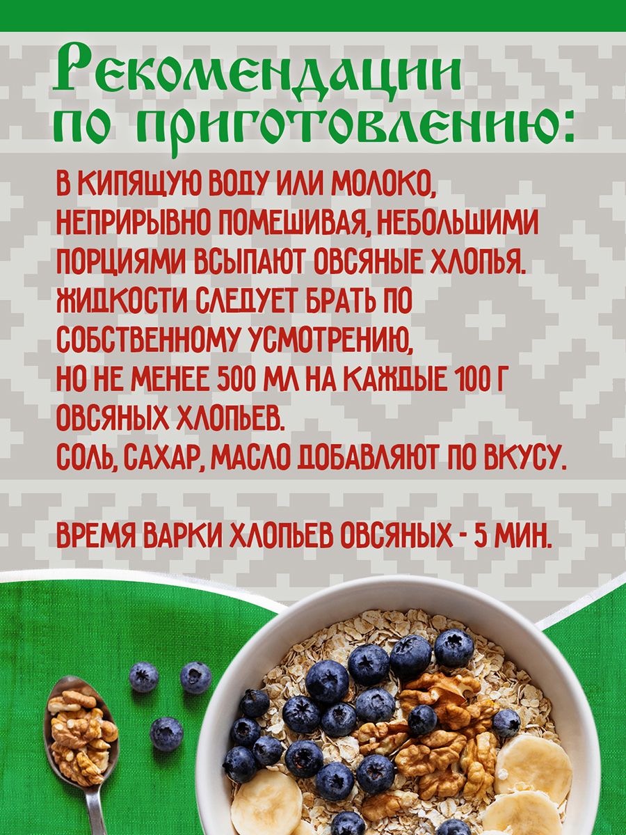 Описание: Овсянка - один из популярнейших во всем мире продуктов на завтрак. Ее едят в королевских дворцах и обычных квартирах панельных многоэтажек. Диетологи рекомендуют употреблять ее и взрослым, и детям. Она прекрасно подходит тем, кто следит за своей фигурой, и тем, кто находится на специальном питании по состоянию здоровья. Для тех, у кого нет времени по утрам заниматься готовкой, идеально подойдет овсяная каша не требующая варки. Не нужно варить! Достаточно залить горячей водой или молоком и настоять в течение нескольких минут. Способ приготовления: 100г смеси залить 0,40-0,45 л кипящей воды или молока, по вкусу добавить соль, сахар, масло, перемешать, закрыть крышкой, оставить на 5 минут. Ищите нас по запросам: продукты быстрого приготовления, каша быстрого приготовления, овсяная каша, ячменные хлопья, пшеничные хлопья, смесь злаков, каша овсяная, Увелка, каши быстрого приготовления, крупы в пакетиках, каша овсяная быстрого приготовления, хлопья ржаные, хлопья для варки, хлопья не требующие варки, хлопья овсяные, овсяные хлопья, полезное питание, здоровое питание, правильное питание, натуральный продукт, белорусские продукты