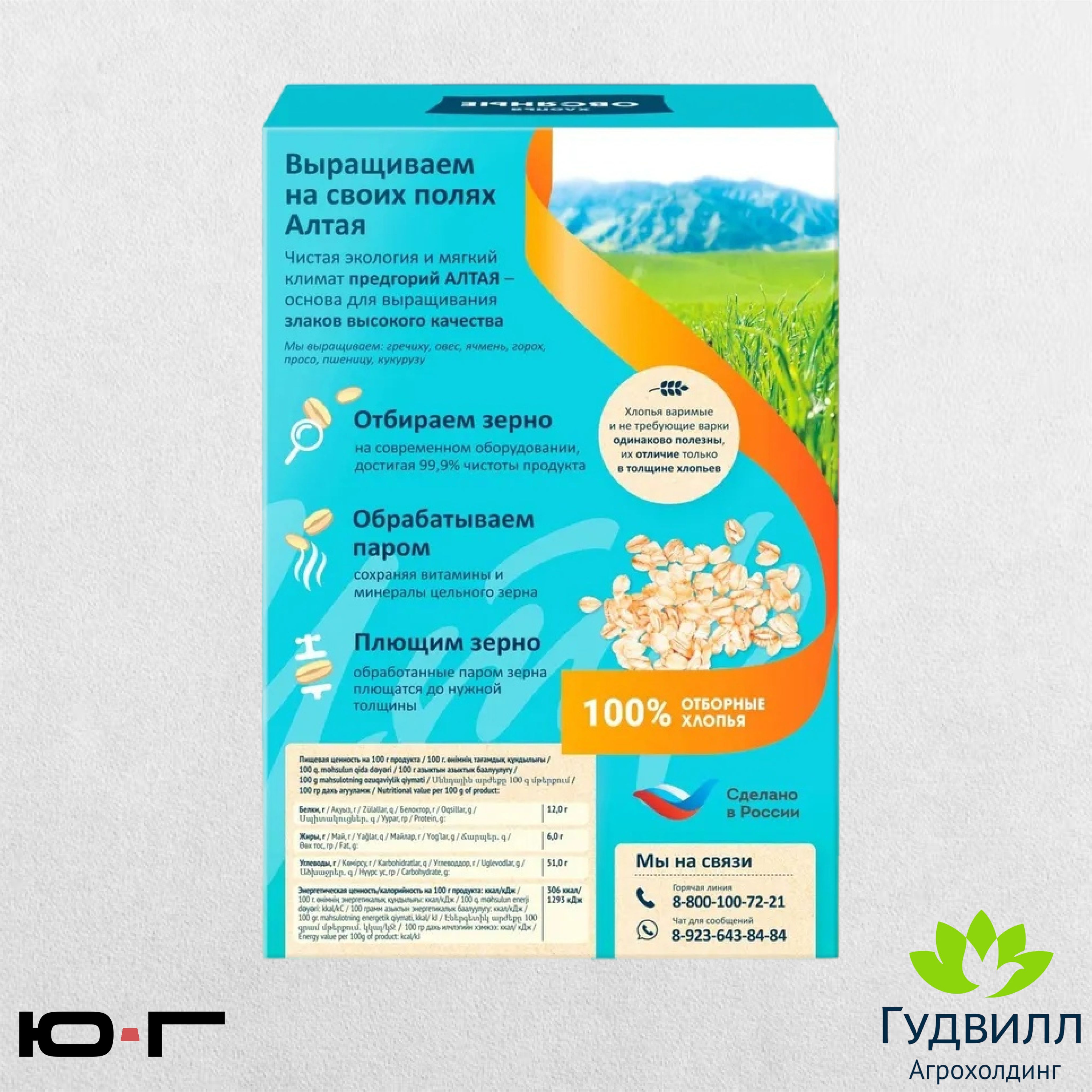 Описание: Агрохолдинг Гудвилл – крупный производитель полного цикла с Алтая, где чистая экология и мягкий климат – основа для выращивания злаков. Это позволят передать максимум природной пользы в готовом продукте. Хлопья не требуют варки, их достаточно залить кипятком/горячим молоком. Хлопья, не требующие варки, и варимые одинаково полезны – их отличие лишь в толщине хлопьев. Хлопья овсяные подходят для приготовления каши, батончиков, гранолы. Употребляя цельнозерновые хлопья на завтрак, Вы заряжаете себя бодростью, энергией и настроением на целый день. Хлопья овсяные для тех, кто заботится о фигуре и выбирает здоровый образ жизни! Произведены из овсяной крупы 1 сорта. Содержит глютен. Способ приготовления: залить кипятком или горячим молоком в пропорции 1:1,5. Дать настояться под крышкой в течение 5 минут. Добавить по вкусу мёд, орехи, фрукты или ягоды.