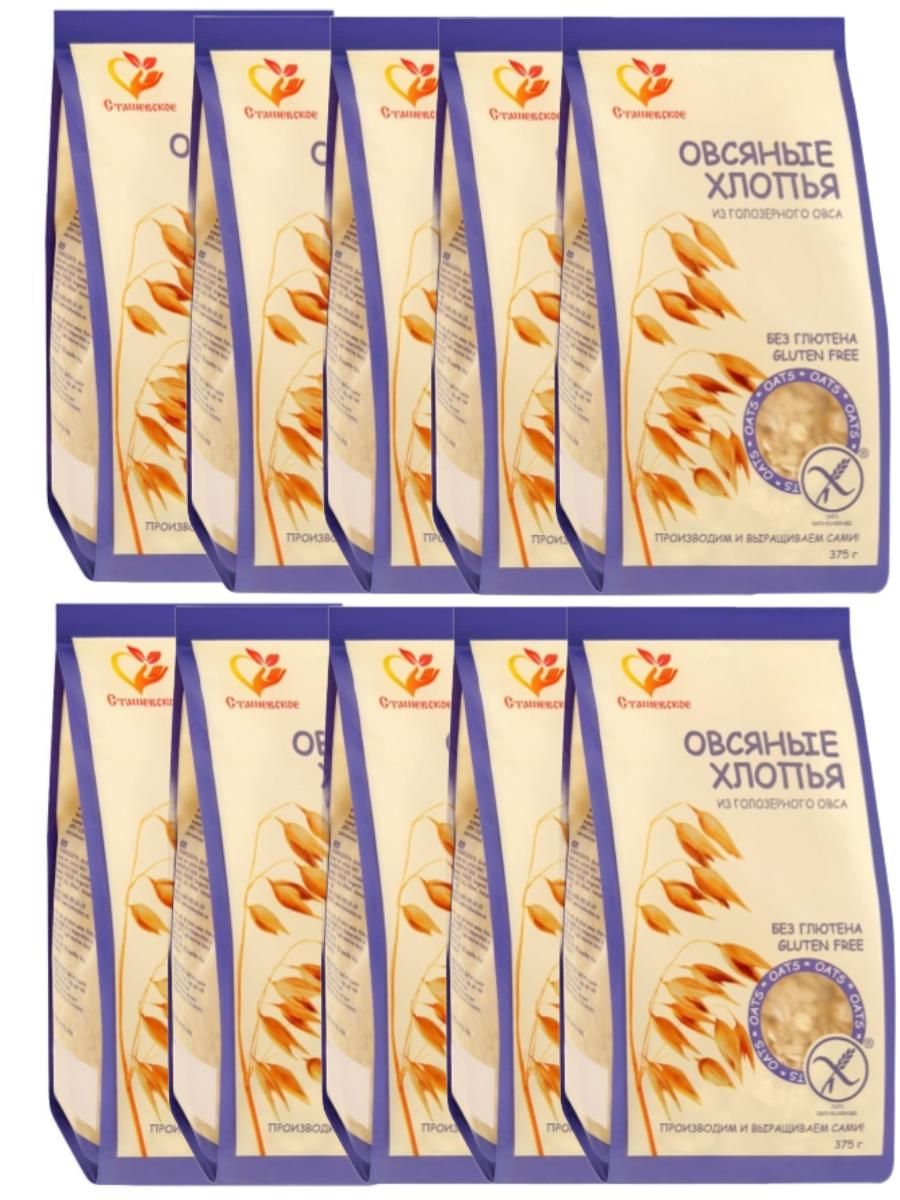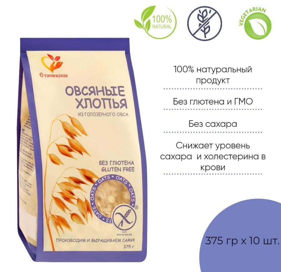 Хлопья овсяные из голозёрного овса натуральные, без глютена, 375 гр. Сташевское (10 шт. в наборе)