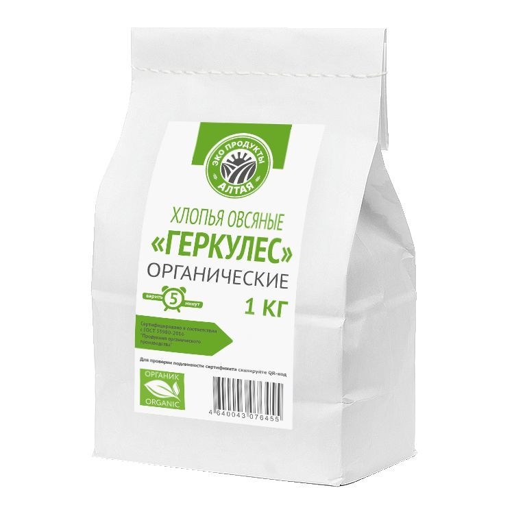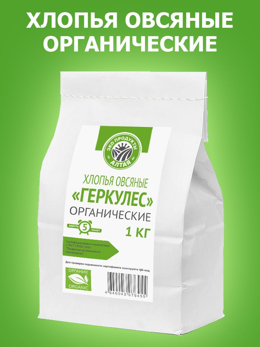 Описание: Хлопья овсяные Геркулес - органические 1 кг.Хлопья овсяные органические - экологически чистый продукт, при выращивании и производстве которого не наносится вреда окружающей среде и человеку. Овес для этих хлопьев выращен на органических полях Алтайского края, Бийский район.