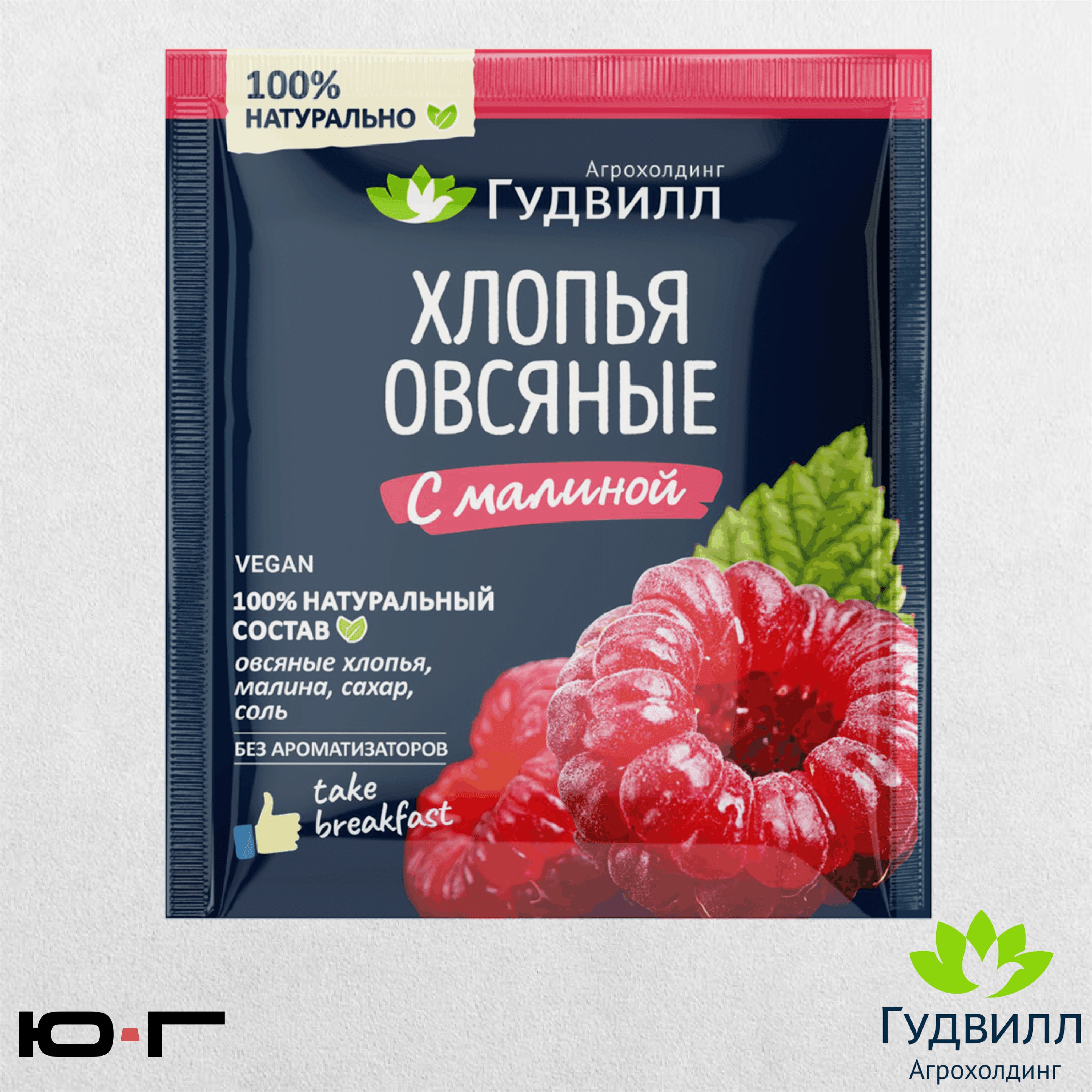 Хлопья овсяные с малиной, Гудвилл, НТВ, 40 гр. - 3 шт.